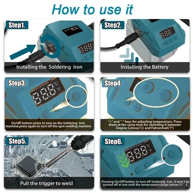 Total praktisch - dieser Lötkolben geht überall mit! Mit USB-C Anschluss kannst du ihn an Powerbank, Laptop oder Auto-Ladegerät anschließen. Der eingebaute 800mAh Akku macht ihn komplett kabellos - perfekt für unterwegs oder schwer erreichbare Stellen. Das LCD Display zeigt dir immer die aktuelle Temperatur an, und mit 3 Stufen von 260°C bis 420°C hast du für jedes Projekt die richtige Hitze. Im Set sind gleich 3 verschiedene Lötspitzen dabei, plus Lötdraht, Reinigungsschwamm und praktischer Aufbewahrungskoffer. Der hitzebeständige Griff schützt deine Hände und das TPE-Material liegt gut in der Hand. Einfach 5 Sekunden den Knopf drücken zum Ein- und Ausschalten - super intuitive Bedienung. Ob für Elektronik-Reparaturen, Modellbau oder kreative Projekte - dieses Set hat alles was du brauchst. Endlich kein lästiges Kabel mehr im Weg! Einfach aufladen und loslöten!