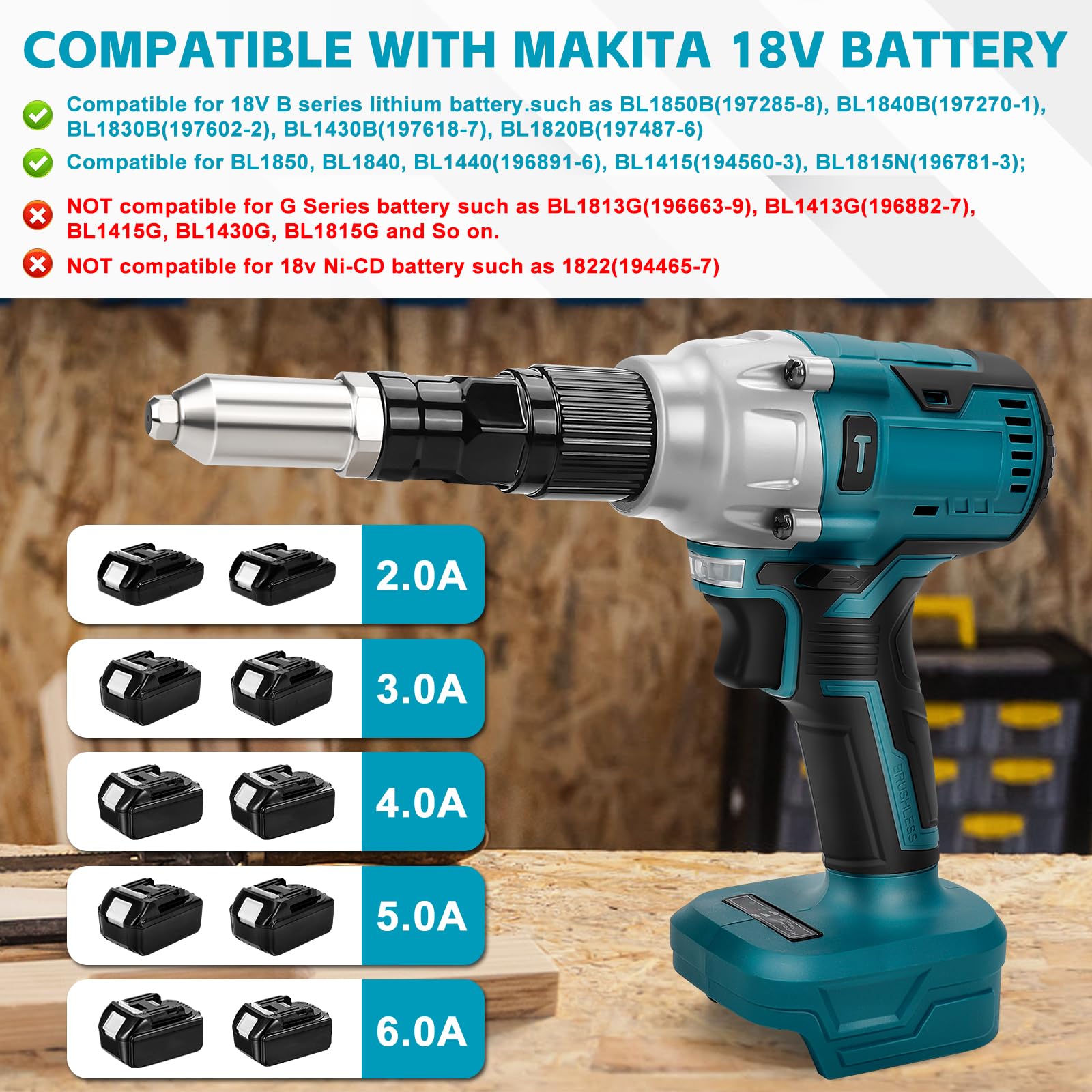 Handwerker aufgepasst! Diese Akku-Nietzange macht dir das Leben leicht. Kompatibel mit Makita 18V Akkus - kabellos und überall einsetzbar. Mit bürstenlosem Motor der 20 kN Kraft bringt - das ist richtig was!\n\nVerarbeitet Nieten von 2,4-5,0 mm - für fast alle Arbeiten geeignet. One-Touch-Bedienung - einfach drücken und die Zange macht den Rest. Automatisches Nieten und Nagelbrechen.\n\nMit LED-Licht für dunkle Ecken. Ergonomischer Griff mit Gummi - ermüdungsfreies Arbeiten auch über längere Zeit. 20mm Hub - für Möbelmontage, Reparaturen oder Heimwerker-Projekte.\n\nIm Lieferumfang: Zange, 20 Nieten, 3 Adapter und Schlüssel. Akkus nicht dabei - aber alle Makita 18V passen. Endlich Schluss mit anstrengendem manuellen Nieten!\n\nProfiqualität für jeden der viel nietet. Deine Hände werden's dir danken!