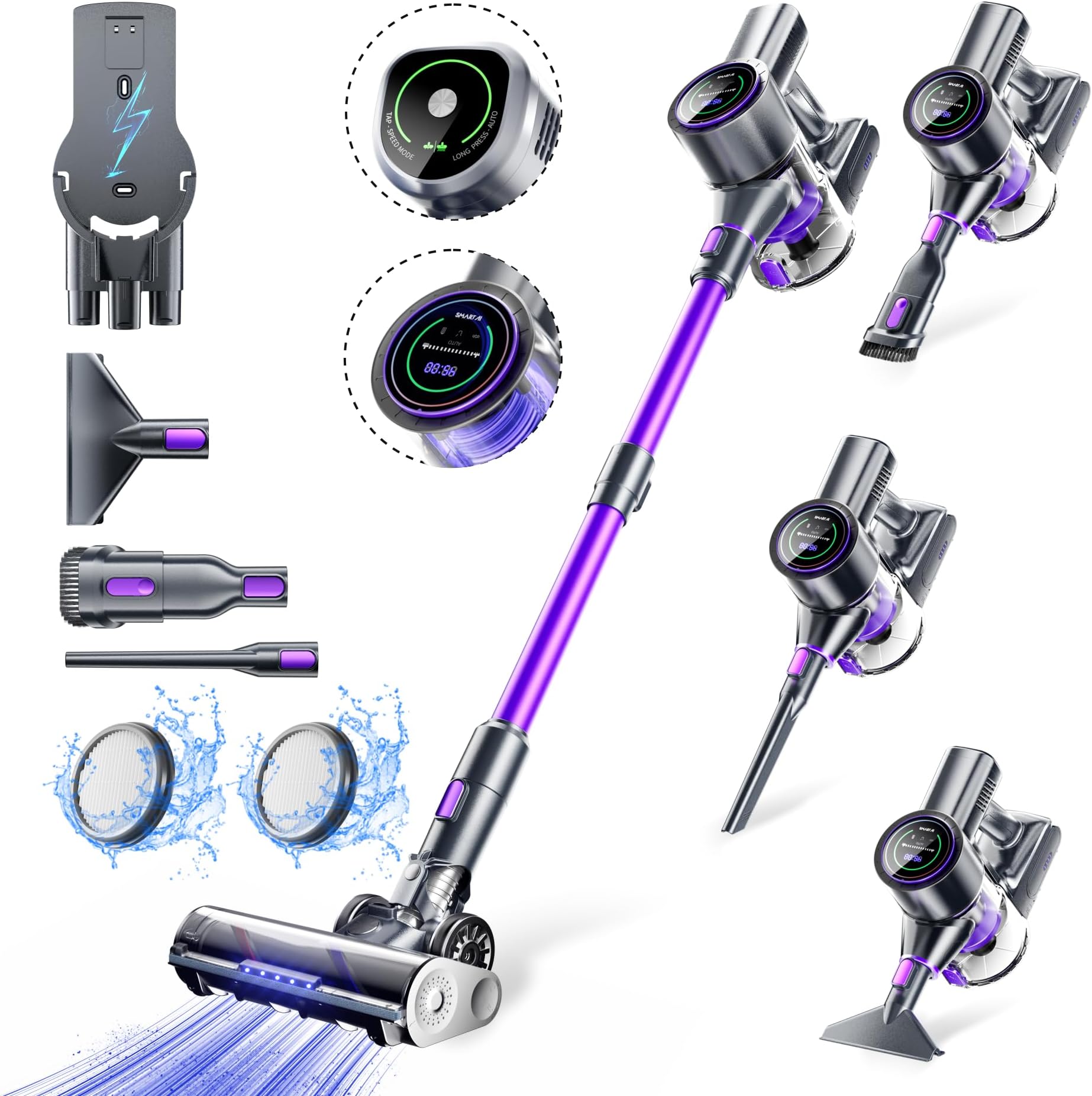Endlich kabellos staubsaugen!🏠 Dieser Akku-Staubsauger ist einfach der Hammer für alle, die keine Lust mehr auf lästige Kabel haben. Mit 600W Motorleistung und 50.000 Pa Saugkraft saugt er alles weg - Tierhaare, Krümel, Feinstaub - einfach alles!🐕 Besonders praktisch: Die bis zu 65 Minuten Laufzeit! So schaffst du deine ganze Wohnung in einem Durchgang. Die Wandhalterung mit Ladefunktion sorgt dafür, dass der Sauger immer einsatzbereit und ordentlich verstaut ist.📌 Der Selbststeh-Mechanismus ist genial - einfach abstellen, ohne Anlehnen oder Umkippen. Das Teleskoprohr ist höhenverstellbar - perfekt für große und kleine Nutzer. Der Automatikmodus passt die Saugleistung automatisch an den Bodenbelag an - mehr Power auf Teppichen, sanfter auf Hartböden.👟 Die S-förmige Anti-Tangle-Bürste verhindert lästiges Haarwickeln - ideal für Tierbesitzer! Die LED-Beleuchtung an der Bodendüse macht versteckten Schmutz unter Möbeln sichtbar.💡 Und das i-Tüpfelchen: Die Duftpad sorgen für frischen Duft beim Saugen! Also: Wenn du keine Lust mehr auf Kabelchaos hast und einen leistungsstarken Sauger suchst, ist dieses Modell genau das Richtige! Einfach aufladen, loslegen und sich über saubere Böden freuen.