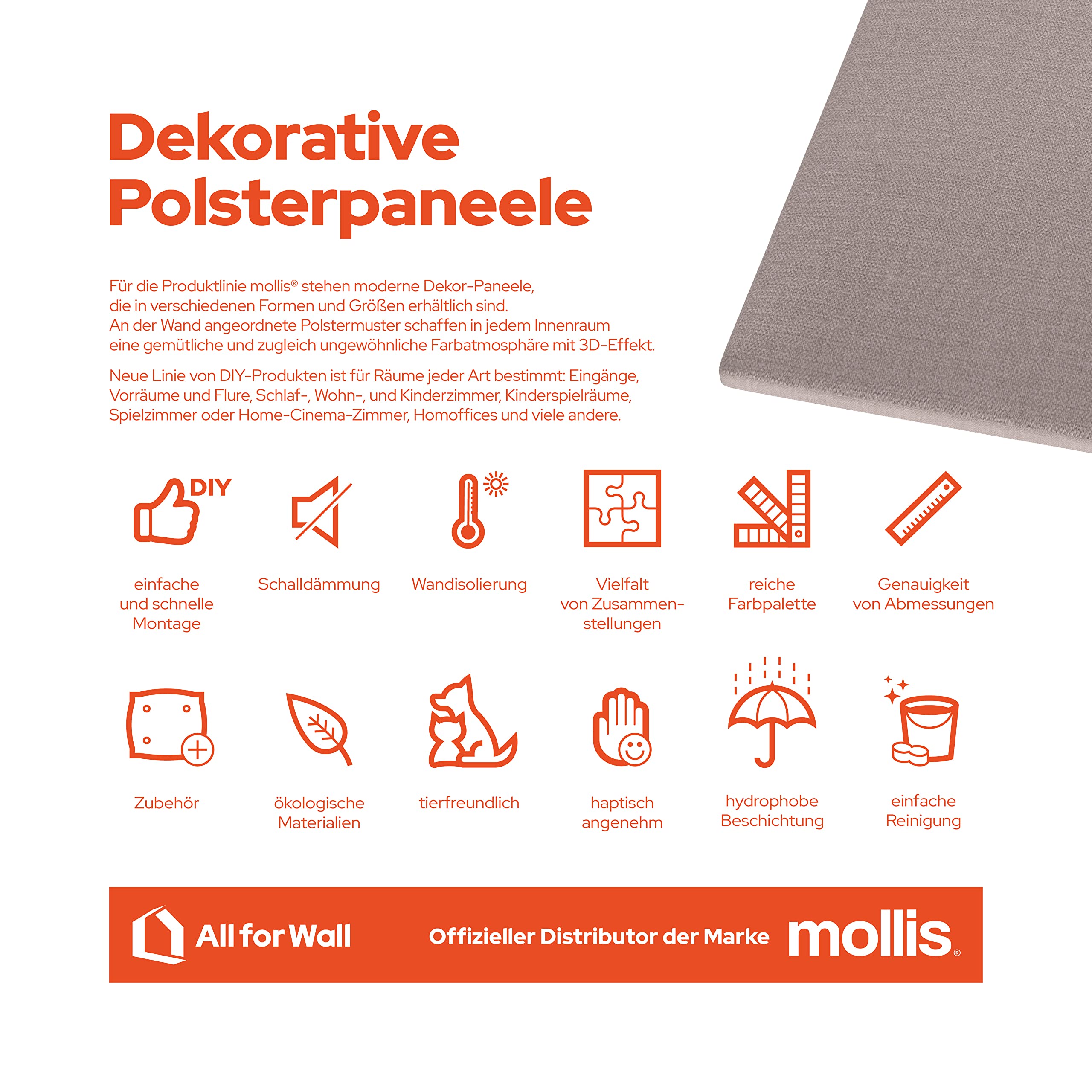 Diese stylischen Wandpolster von MOLLIS sind echt vielseitig! 90x30cm groß und aus hochwertigem PU-Schaumstoff. Perfekt als modernes Bettkopfteil, als Aufprallschutz im Kinderzimmer oder zur Akustikverbesserung im Wohnzimmer. Reduziert Hall und Lärm - super für Homeoffice oder Musikzimmer. Aus Möbelstoffen, die schmutzabweisend und leicht zu reinigen sind. Einfach mit Klettverschluss anbringen - kein Bohren nötig. In verschiedenen Farben erhältlich. Mach deine Wände gemütlich und funktional!