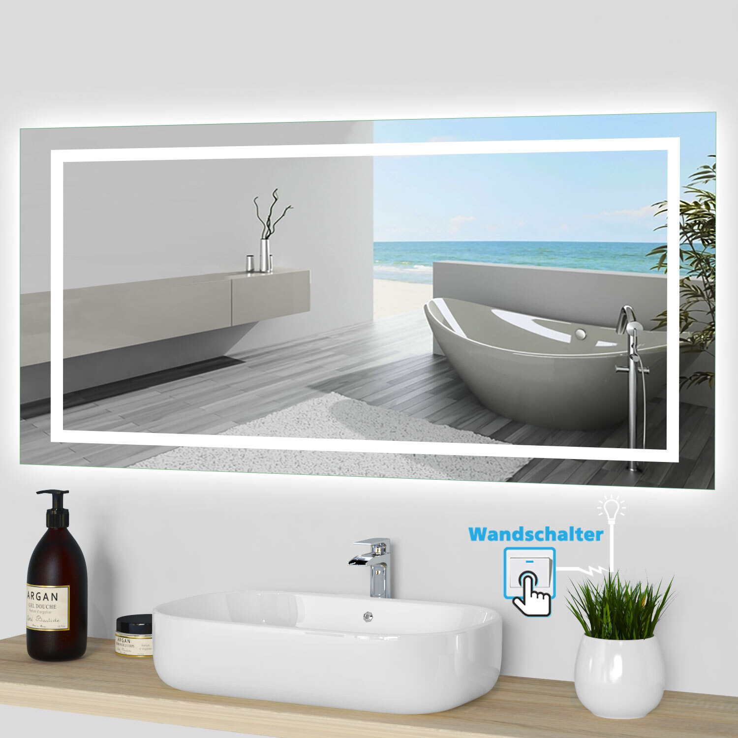 Dieser Spiegel macht dein Bad zum Wohlfühl-Ort! Mit satten 70x60 cm Größe und moderner LED-Beleuchtung in drei Farben (warm, neutral, kalt) - perfekt für jedes Lichtbedürfnis. Wahlweise mit Berührungs-, Sensor- oder Kettenschalter. Das besondere Feature: Integrierte Spiegelheizung verhindert das Beschlagen - nach dem Duschen immer klare Sicht! Optional mit Uhr, Wetterstation oder Bluetooth-Lautsprechern. Die Kanten sind fachmännisch geschliffen - absolut sicher auch für Familien mit Kindern. Hergestellt in Europa in bester Qualität. Einfache Montage und ein echter Hingucker im Badezimmer. Ob morgens beim Schminken oder abends beim Entspannen - mit diesem Spiegel hast du immer perfektes Licht. Verwandle dein Bad in eine Wellness-Oase!