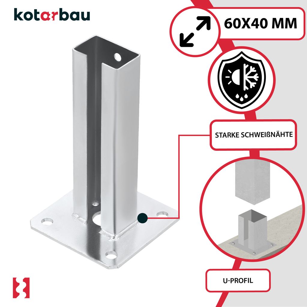 Perfekte Pfostenhalterungen für dein nächstes Zaunprojekt! Dieses 2er Set von Alberts ist einfach genial - feuerverzinkter Stahl für maximalen Rostschutz und eine lichte Breite von 71mm passt zu den meisten Standardpfosten. Das bewegliche Oberteil macht die Montage super einfach, einfach aufschrauben und fertig! Mit 10 Löchern (Ø 11mm) für sicheren Halt. Die Plattenmaße von 100x100mm und 60mm Tiefe sorgen für Stabilität. Alberts Qualität made in Germany - da weißt du, was du hast. Ob für Gartenzaun, Carport oder Sichtschutz - mit diesen Pfostenträgern steht alles bombenfest!