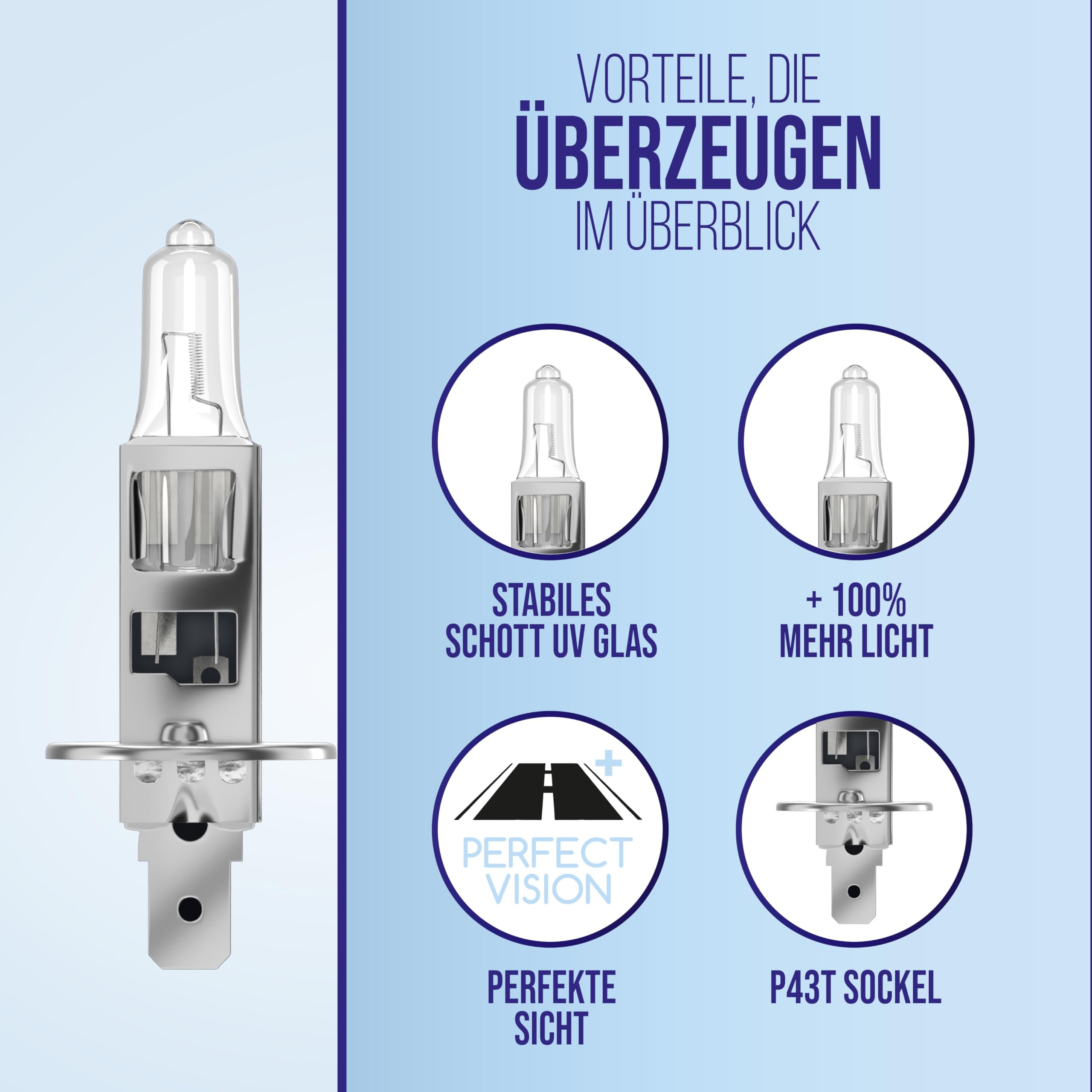 Sieh und gesehen werden - mit dieser hochwertigen H1 Halogenlampe von alca! Mit satten 100% mehr Lichtleistung als Standardlampen sorgst du für deutlich bessere Sicht bei Nachtfahrten. Die 12V/55W Lampe mit P14.5s Sockel bietet nicht nur überlegene Helligkeit, sondern auch eine homogene Lichtverteilung für optimale Ausleuchtung der Straße. Durch das spezielle Quarzglas wird die Blendung reduziert und die Entfernungsfokussierung verbessert - deine Sicherheit steht im Vordergrund! Offiziell nach R37 und E4 zertifiziert, ist diese Lampe uneingeschränkt für den europäischen Straßenverkehr zugelassen. Egal ob als Fernlicht, Abblendlicht oder Nebellicht - diese vielseitige Lampe erfüllt alle deine Beleuchtungsbedürfnisse. Ein einfacher Wechsel der alten gegen die neue Lampe genügt, und schon profitierst du von deutlich besserer Sicht bei deinen nächtlichen Fahrten. Ein kleines Upgrade mit großer Wirkung für deine Fahrzeugsicherheit!