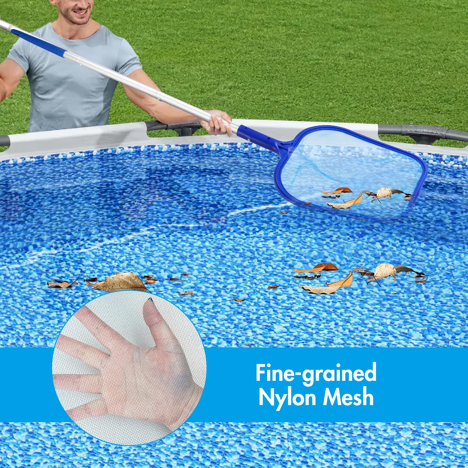 • Trlyane Pool Kescher 160cm Mit Teleskopstange - Feinmaschiger Algenkescher Für Pool, Teich & Whirlpool - Aus Aluminium & Nylon