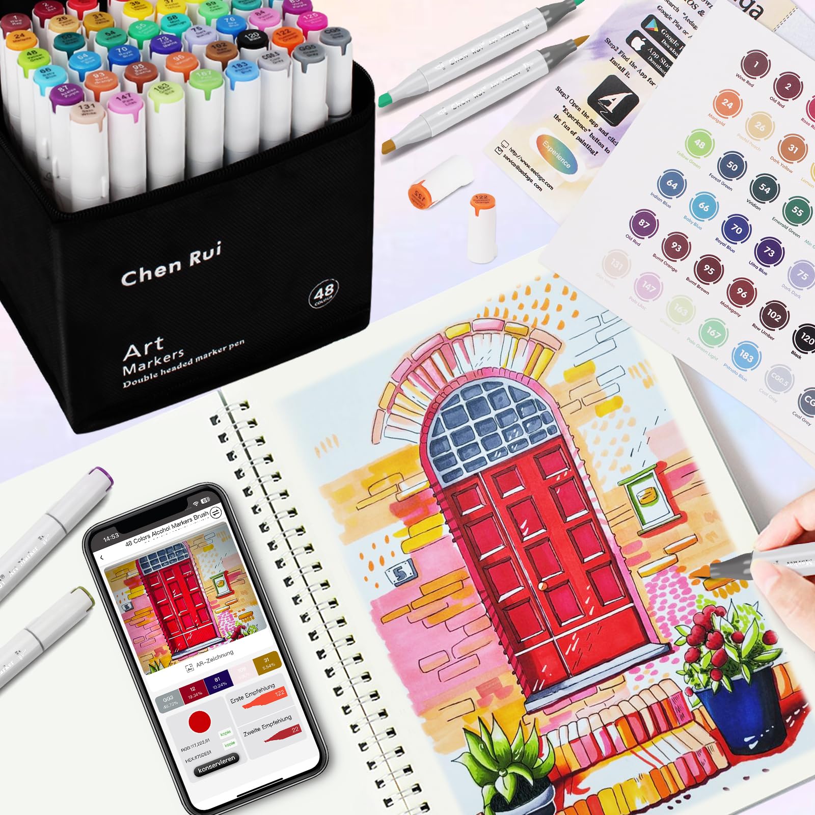 AEDAGA 120 Alkohol Marker Set - Doppelspitze Mit App & Aufbewahrungstasche