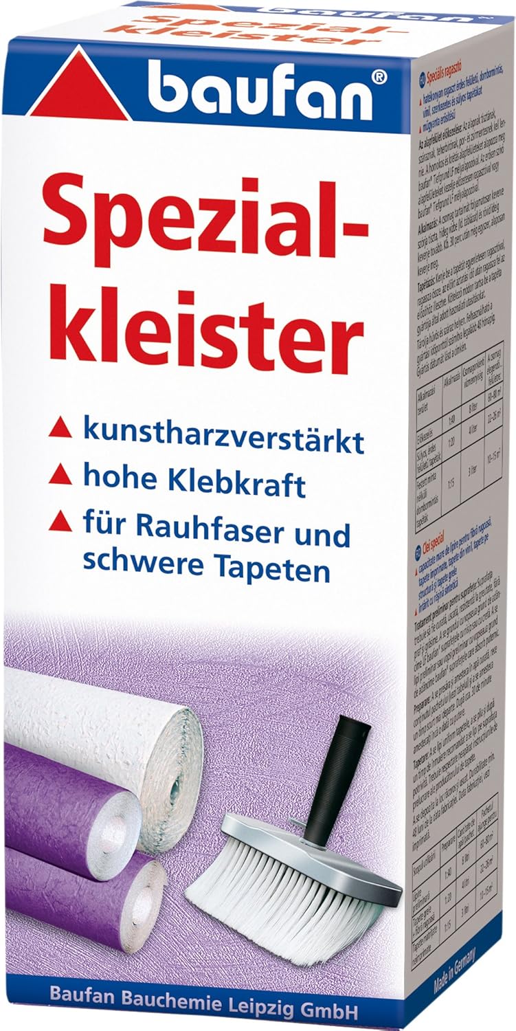 Perfekt für dein nächstes Renovierungsprojekt! Dieser Spezialkleister ist echt ein Allrounder - ob Papiertapete, Vinyl, Satin oder Rauhfaser, hier klebt alles bombenfest. Und das Beste: In nur 7 Minuten ist der Kleister einsatzbereit! Einfach das Pulver ins Wasser rühren, kurz warten und schon kann's losgehen. Keine lästige Weichzeit nötig - Tapete direkt auf die gekleisterte Wand und gut ist. Übrigens: Die Tapeten lassen sich später rückstandslos wieder abziehen. Eine Packung reicht für ca. 22-26 m² normale Tapete. Made in Germany - Qualität, auf die du dich verlassen kannst! Probier's aus und mach deine Wände zum Hingucker!