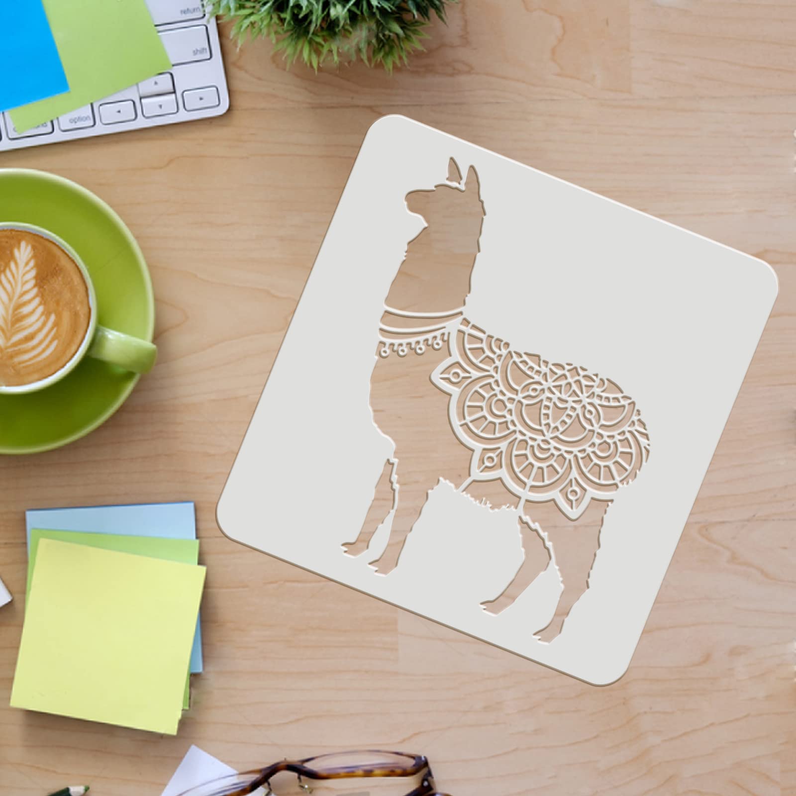Kreativität war noch nie so niedlich! Dieses 6-teilige Lama-Schablonen-Set bringt Charme in deine Bastelprojekte. Die Alpaka-Motive mit Brille sind einfach entzückend und perfekt für DIY-Vorhaben. Aus robustem PET-Material sind die Schablonen wiederverwendbar und leicht zu reinigen. Mit A5-Größe (21x14,8cm) ideal für Holzschilder, Wände, Leinwände, Stoffe und Möbel. Ob mit Acrylfarben, Kreide oder Buntstiften - die Ergebnisse werden bezaubernd! Einfach mit Klebeband fixieren, Farbe auftragen und staunen. Perfekt für Kinderzimmer-Deko, Geschenke oder eigene Kunstwerke. Lass deiner Kreativität freien Lauf und verbreite Lama-Glück in deinem Zuhause!