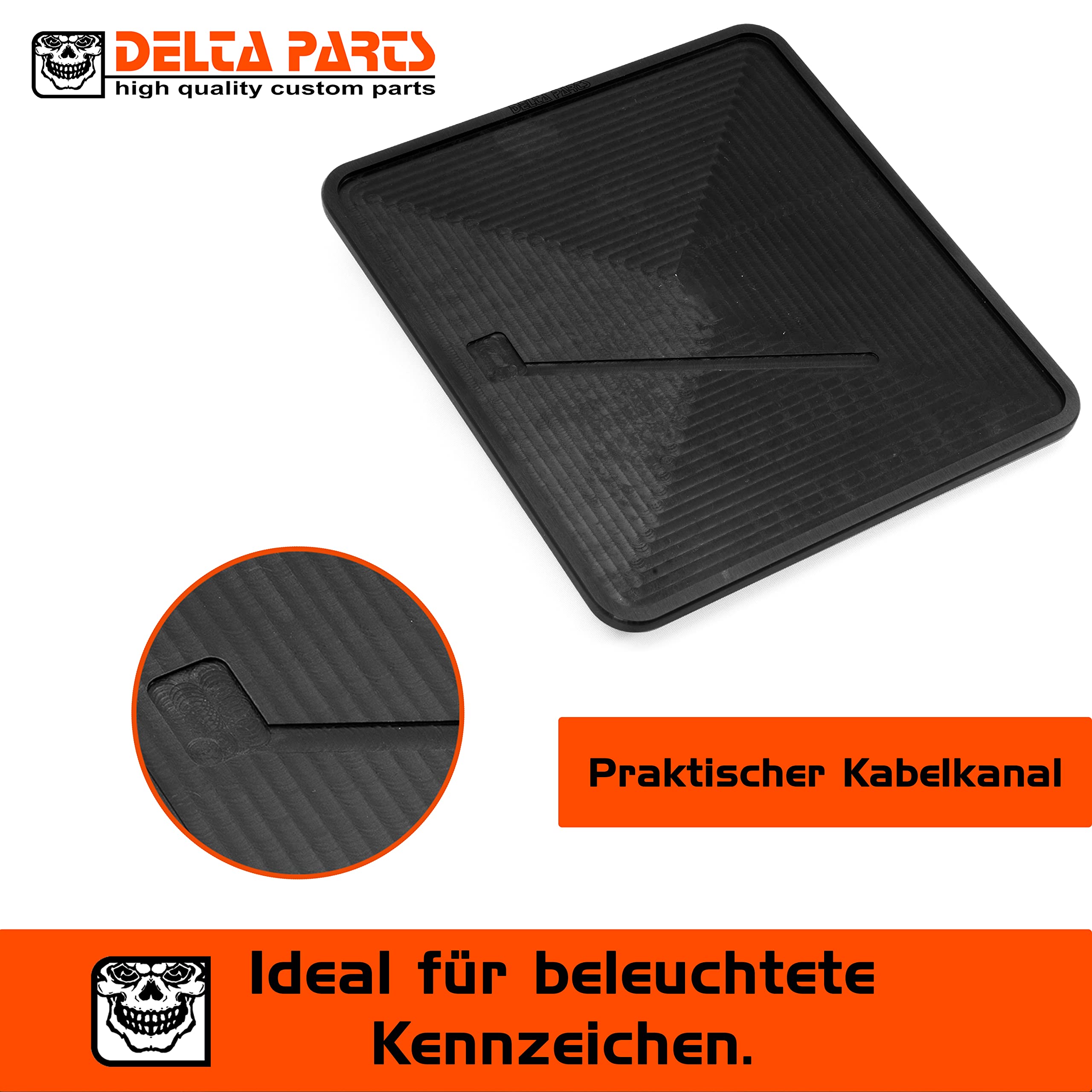 Made in Germany - und man merkt's! Diese Kennzeichenplatte von Delta Parts ist einfach Qualität pur. Aus 6mm starkem Aluminium CNC-gefräst, hochglanzpoliert und mit LED-Beleuchtung. Das Kennzeichen liegt schön vertieft, also gut geschützt vor Verbiegen und Reißen. Mit 180x200mm perfekt für deutsche Kennzeichen. E-geprüft, also alles legal. Einfach montieren - entweder mit den Bohrungen oder mit dem mitgelieferten Klebeband. Sieht nicht nur mega aus, sondern hält auch was aus. Für alle, die ihr Bike individueller machen wollen!