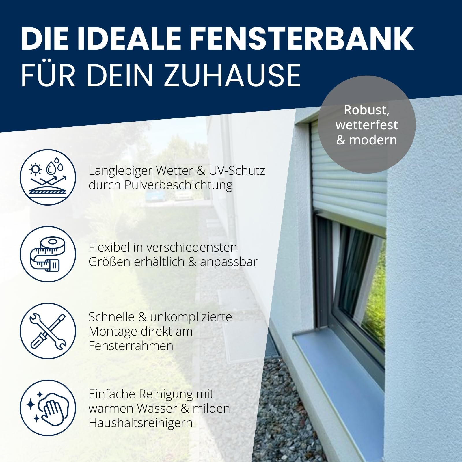 Diese Alu-Fensterbank macht dein Haus komplett! 180mm breit, 1500mm lang, in silber - passt zu fast jedem Hausstil. Aus robustem Aluminium, pulverbeschichtet und absolut wetterfest.