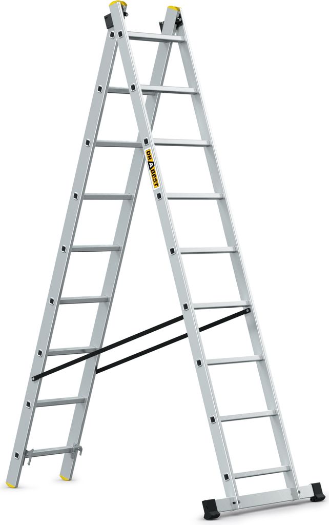 • DRABEST Pro Alu-Leiter 2x7 Sprossen - EN-131 150kg 300cm Grau
