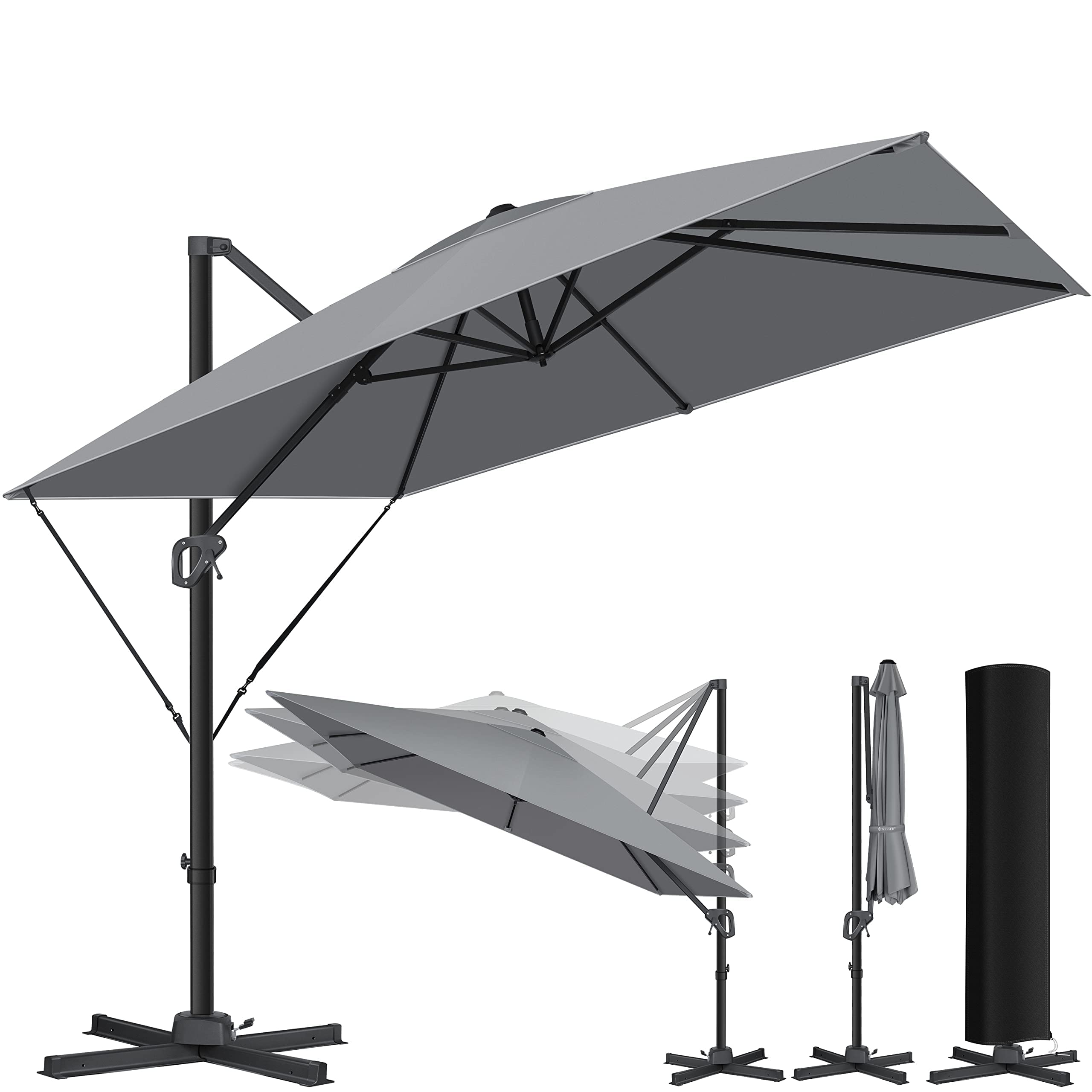 Boah, dieser Ampelschirm ist ja mal richtig praktisch für deinen Garten oder die Terrasse! Mit 3x3 Metern Schirmfläche bietet der richtig viel Schatten - perfekt für gemütliche Sommerabende oder Gartenpartys. Das coole: Du kannst den Schirm komplett um 360 Grad drehen und sogar neigen, damit du immer den perfekten Schatten erwischst, egal wo die Sonne steht. Mit dem Kurbelsystem öffnest du den Schirm super einfach, ohne dich anzustrengen. Aus robustem Aluminium und mit 26kg Gewicht steht der Schirm bombenfest, besonders mit dem mitgelieferten Bodenanker zum Einbetonieren. Der Polyester-Stoff ist mit 250g/m² richtig stabil, witterungsbeständig und hat UV-Schutz UPF 50 - deine Haut wird's dir danken! Die 8 Streben sorgen für maximale Stabilität, selbst bei etwas Wind. Ob für den Garten, die Terrasse oder als Marktschirm - mit diesem Schirm bist du perfekt ausgestattet für den Sommer. Einfach aufstellen, Kurbeln und den Schatten genießen!