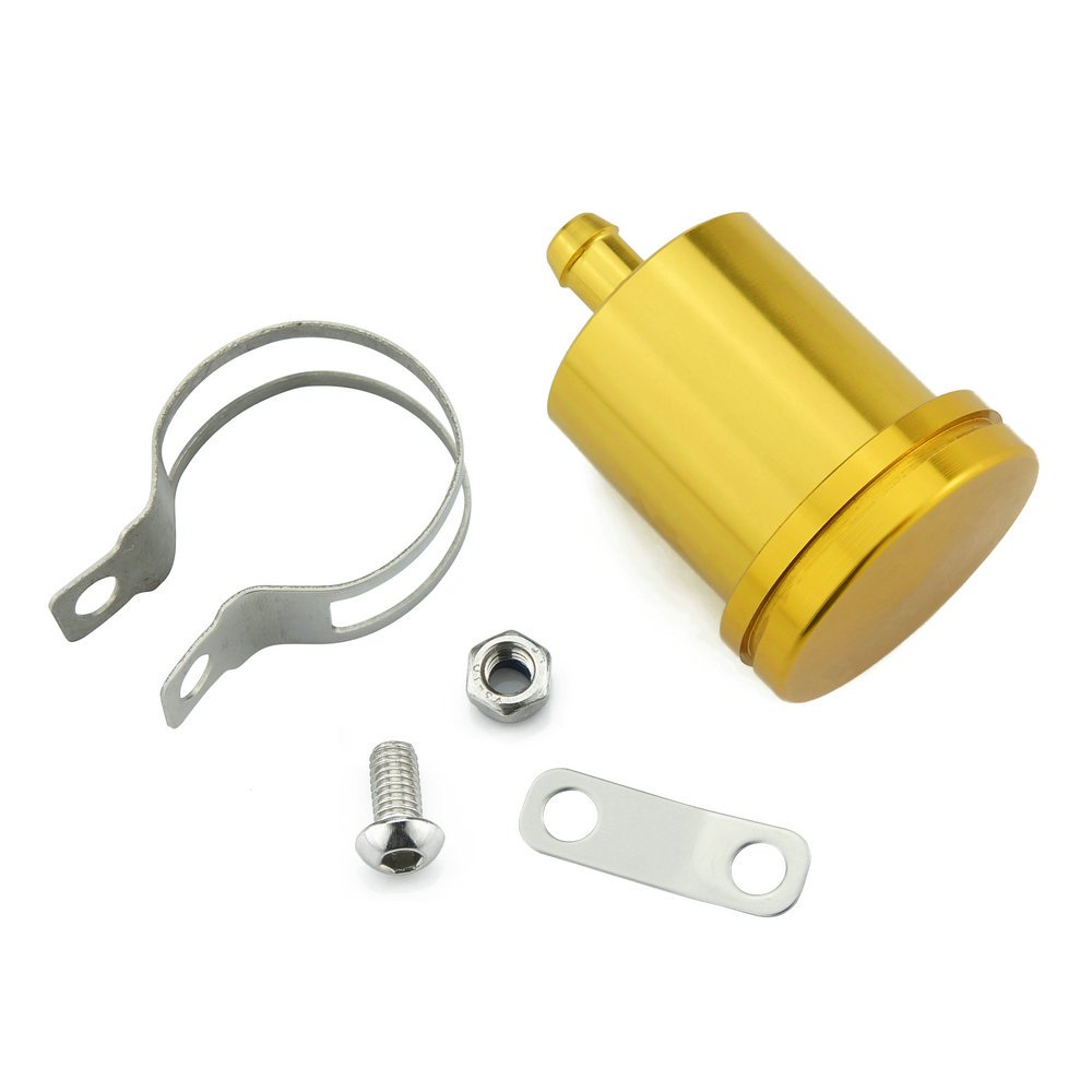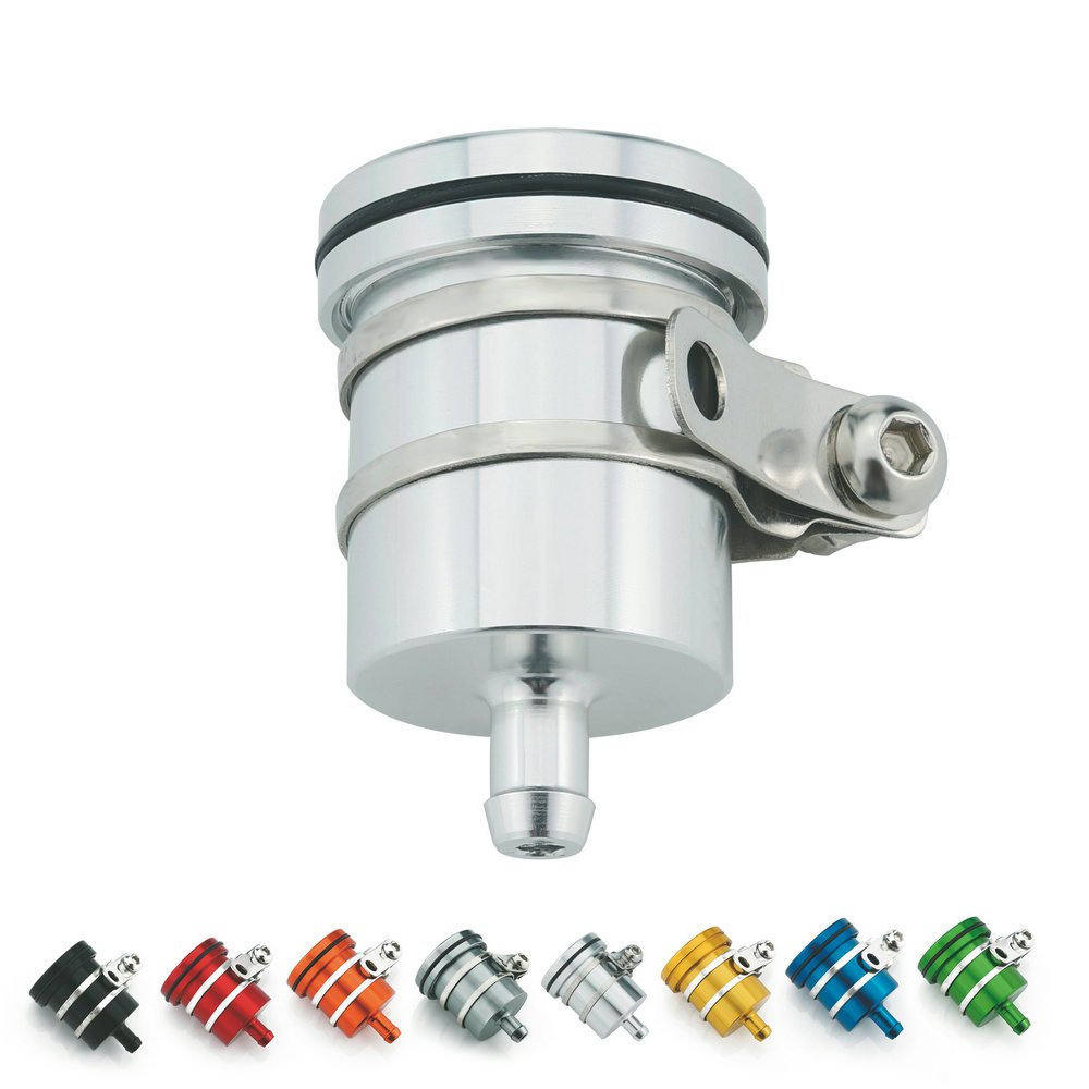 Upgrade deine Maschine mit diesem hochwertigen Bremsflüssigkeitsbehälter aus CNC-gefrästem Aluminium! Der universelle Tank passt für praktisch alle Motorradmodelle von Ducati, Honda, Kawasaki, Suzuki, Yamaha und Triumph - egal welches Baujahr. Mit den Maßen 54x37mm ist er kompakt und dennoch leistungsstark. Erhältlich in verschiedenen Farben (Schwarz, Gold, Rot, Silber, Blau, Grau, Grün, Orange), sodass du den Look deiner Maschine individuell anpassen kannst. Die Installation ist denkbar einfach: Dank standardisiertem 3mm Gewinde montierst du den Behälter ohne komplizierte Anleitung in kurzer Zeit. Das hochwertige Aluminium ist nicht nur optisch ein Highlight, sondern auch extrem langlebig und korrosionsbeständig. Perfekt als Ersatzteil oder fürs Customizing deines Motorrads. Verpasse deiner Maschine das gewisse Etwas und sorg gleichzeitig für zuverlässige Bremsleistung!