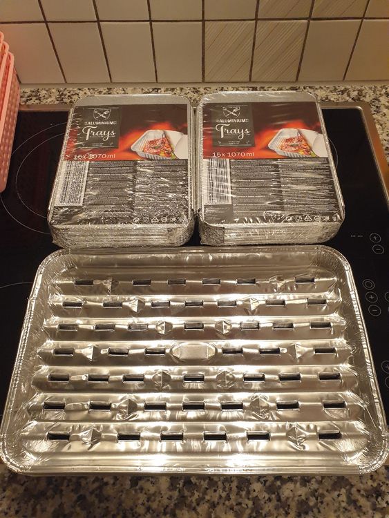 Mann, diese Aluminiumschalen von Clarina sind einfach praktisch! Im 10er-Set hast du immer genug Vorrat. Mit 430x290x20mm passen sie perfekt in jeden Ofen und auf jeden Grillrost. Aus lebensmittelechtem Aluminium - hitzebeständig und super langlebig. Ob für Fleisch, Gemüse oder als Servierschale - die Dinger können alles! Super leicht und stapelbar - sparen jede Menge Platz in der Schublade. Einfach befüllen, in den Ofen schieben oder auf den Grill legen - keine schmutzigen Backbleche mehr! Perfekt für Gartenpartys, Grillabende oder einfach nur fürs Backen zu Hause. Nach Gebrauch einfach entsorgen - kein lästiges Spülen! Die Qualität merkt man sofort - kein dünnes Billig-Alu, sondern stabil und reißfest. Ein Must-Have für jeden, der gerne grillt oder backt! Einfach bestellen und beim nächsten Grillfest der Held sein!