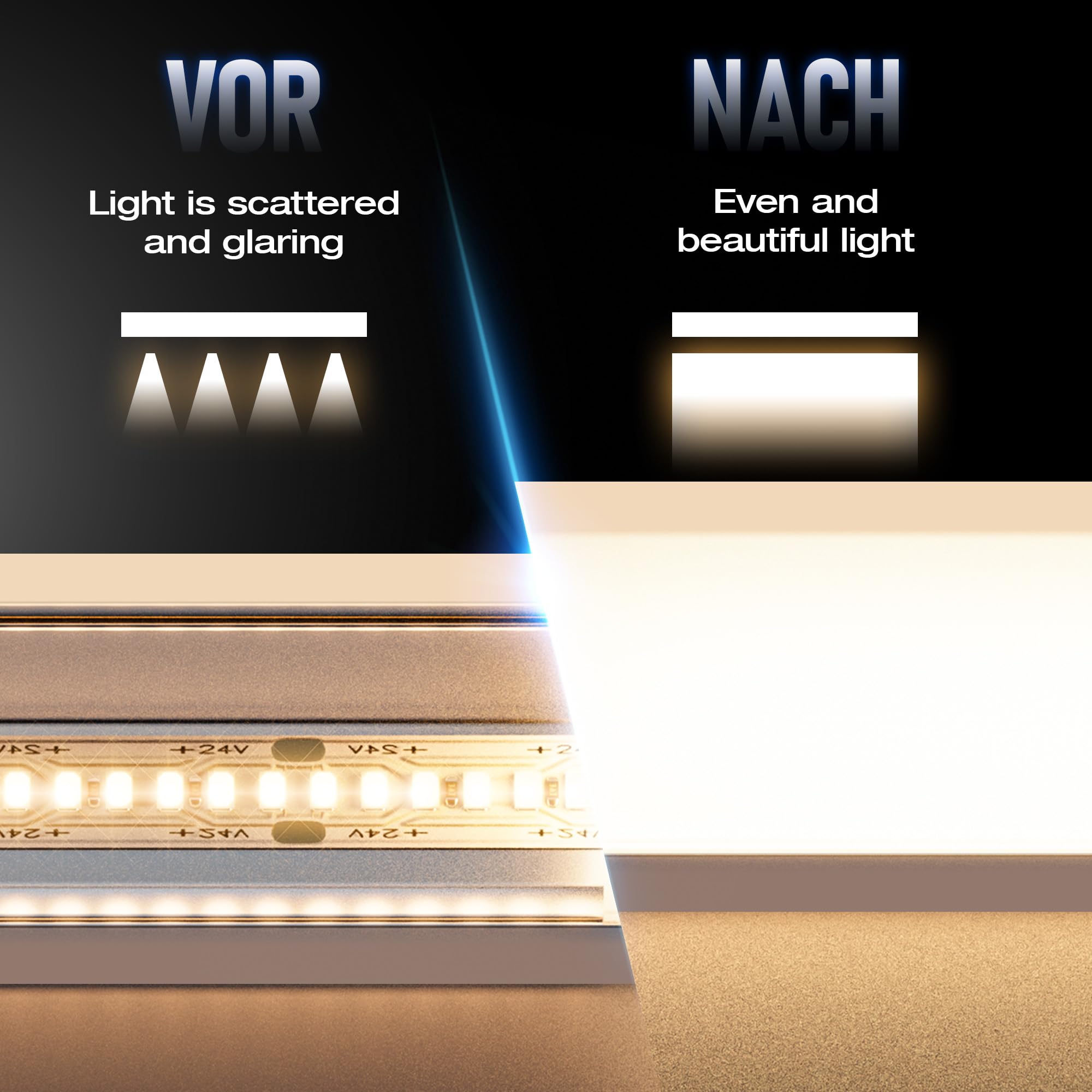 Professionelle LED-Beleuchtung selbst gemacht! Dieses 2m HOOLED Aluprofil in U-Form verwandelt deine LED-Stripes in elegante Lichtbänder. Aus hochwertigem Aluminium mit exzellenter Wärmeableitung für lange LED-Lebensdauer. Inklusive milchigem PC-Diffusor für blendfreies, gleichmäßiges Licht. Für Stripes bis 25mm Breite, passend für 3528, 5050, 2835, 5630 LEDs. Montage als Einbau, Aufputz oder Seilabhängung möglich. Perfekt für Wohnzimmer, Küche, Büro oder Geschäfte. Mit Endkappen und Montageclips - alles dabei für dein DIY-Lichtprojekt!