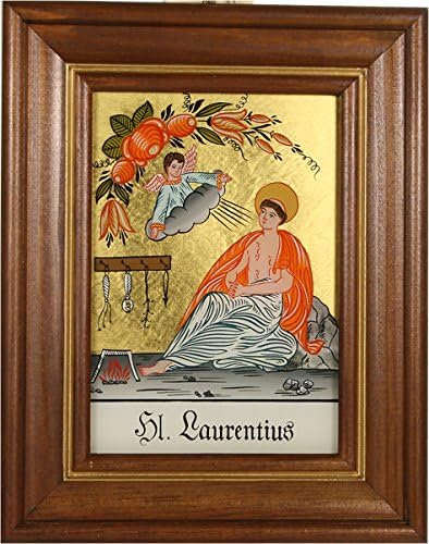 Ein echtes Kunstwerk mit Tradition! Dieses handbemalte Hinterglasbild des Hl. Ambrosius bezaubert durch seine einzigartige Machart. Der Hintergrund schimmert in 24 Karat Blattgold, der braun gebeizte Holzrahmen verleiht dem Ganzen einen edlen Look. Maße: ca. 12,5 x 16 cm. Auf der Rückseite findest du die Legende des Heiligen. Durch die Unebenheiten des Glases wirkt das Bild je nach Betrachtungswinkel lebendig. Perfekt als Geschenk für Taufe, Kommunion, Firmung oder Hochzeit. Ein zeitloses Stück Handwerkskunst, das in keinem religiösen Zuhause fehlen sollte!