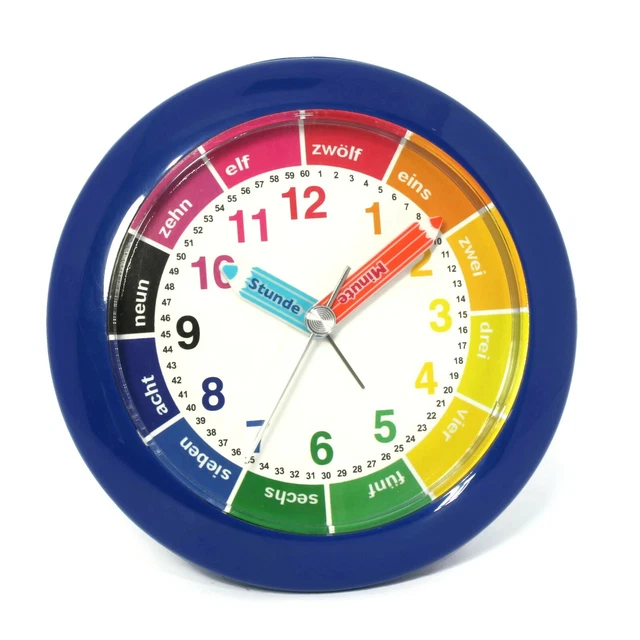 Wie süß ist denn dieser Kinderwecker?! Mit dem lustigen Vogel-Motiv in Rot macht das Uhrzeit lernen richtig Spaß. Das besondere Lern-Ziffernblatt hat nicht nur Zahlen, sondern auch die Zahlen als Text ausgeschrieben - super für Kinder, die gerade die Uhr entdecken. Jede 5-Minuten-Marke hat eine andere Farbe, damit man sich besser orientieren kann. Und wenn's morgens noch dunkel ist: Einfach die große Lichttaste drücken und schon leuchtet das Ziffernblatt angenehm auf. Der Weckton ist nicht zu laut und nicht zu leise - genau richtig für Kinderzimmer. Noch cooler: Du bekommst den Wecker mit dem Wunschnamen deines Kindes personalisiert! Der Name wird automatisch innerhalb von 4 Stunden nach Bestellung abgefragt - also bitte nicht vorher schreiben. Mit nur einer AA-Batterie (die ist schon dabei) läuft das Teil ewig. Aus stabilem Kunststoff, ca. 10,5cm breit, 5cm tief und 9,5cm hoch - perfekt für jedes Kinderzimmer!