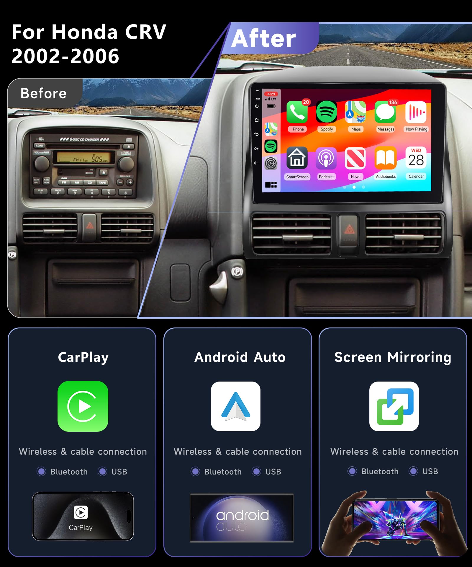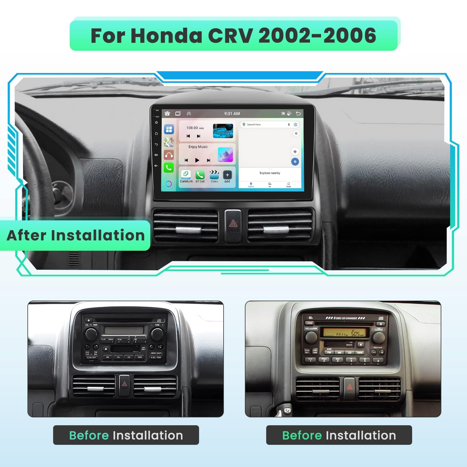 • Android 14 Autoradio Für Honda CRV 2001-2006 - 9 Zoll Wireless Carplay & Android Auto