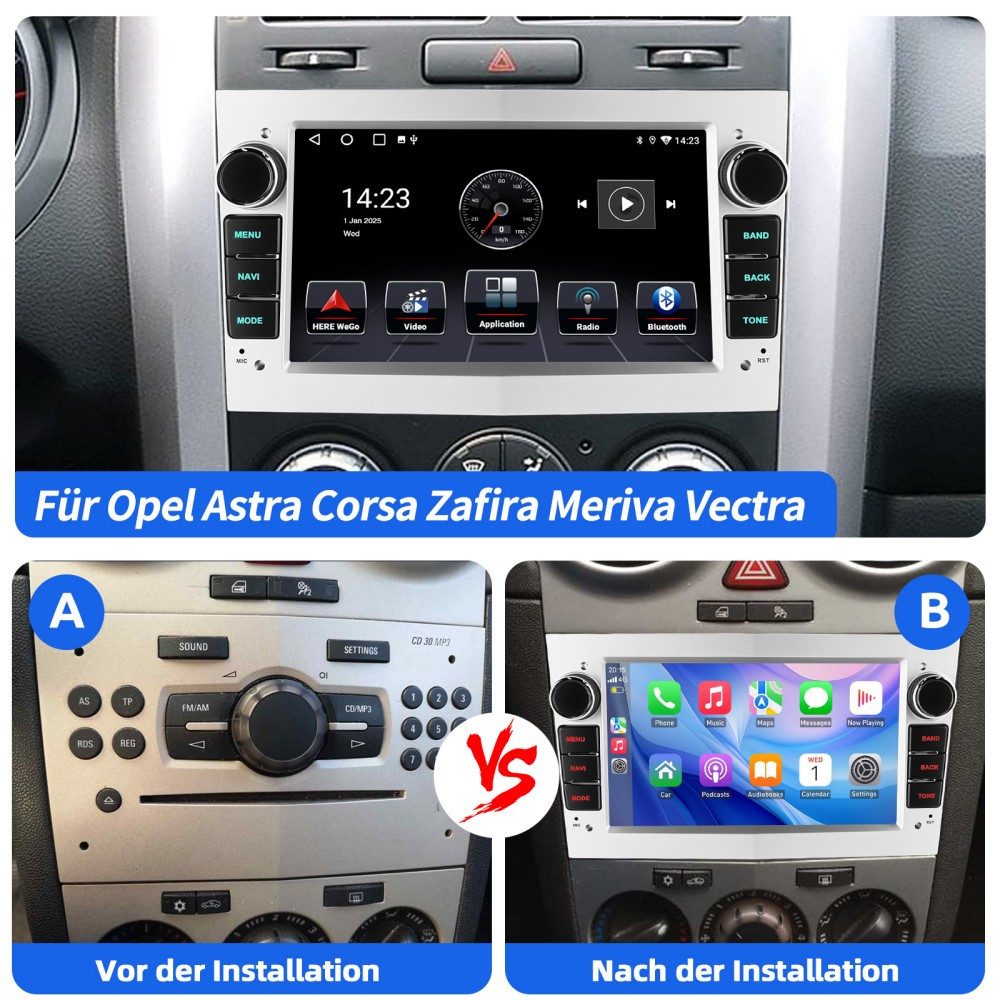 Boah, dieses Autoradio macht deinen Opel richtig modern! Mit Android 14, 1GB RAM und 32GB Speicher - läuft super smooth. 7 Zoll IPS Touchscreen - mega scharf und responsive. Unterstützt Wireless Carplay und Android Auto - einfach per Bluetooth verbinden. Mit Sprachsteuerung - damit bleibst du mit den Händen am Steuer. GPS mit separater Antenne - Navigation läuft perfekt. Rückfahrkamera inklusive - parken wird zum Kinderspiel! Passt für Corsa C/D, Zafira B, Astra H, Meriva, Vivaro und mehr. DAB+ Radio für digitalen Empfang. Alles dabei was du brauchst: GPS-Antenne, CANBUS-Box, Kamera, Installationswerkzeuge. Mach dein Auto fit für die Zukunft - mit diesem All-in-One Radio!