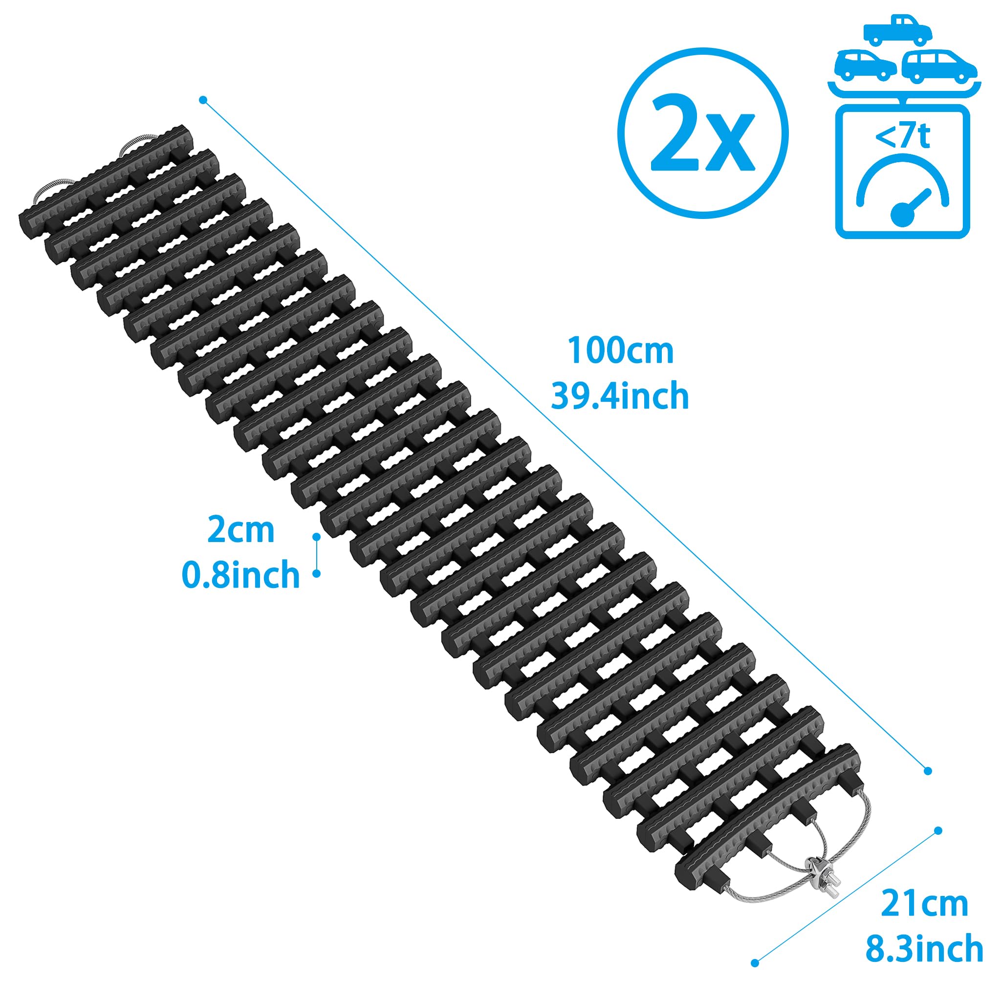 Wenn du mal feststeckst, sind diese Anfahrthilfen von Jopassy die Rettung! Im 2er-Set für beide Antriebsräder. Jede Matte ist 100x21cm groß und 2,5cm dick - made aus robustem TPR-Material mit Stahlkabel. Hält bis zu 3,5 Tonnen aus! Super bei Schnee, Schlamm oder Sand. Einfach vor die Reifen legen und langsam drauffahren - keine Montage nötig. Das geniale Gitter-Design gibt mega Grip. Nach Gebrauch einfach zusammenrollen und in die praktische Tragetasche stecken. Passt in jeden Kofferraum. Für Autos, SUVs, sogar kleine Lastwagen. Nie wieder im Schlamm stecken bleiben - diese Matten holen dich raus! Ein Muss für Winter und Offroad-Fans.