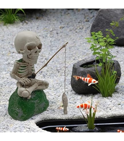 Deko-Fans mit Humor - diese Skelett-Figur ist einfach nur genial! Das kleine Skelett (11,2x5,5x5,5 cm) mit Angel und Grashut sieht urkomisch aus.