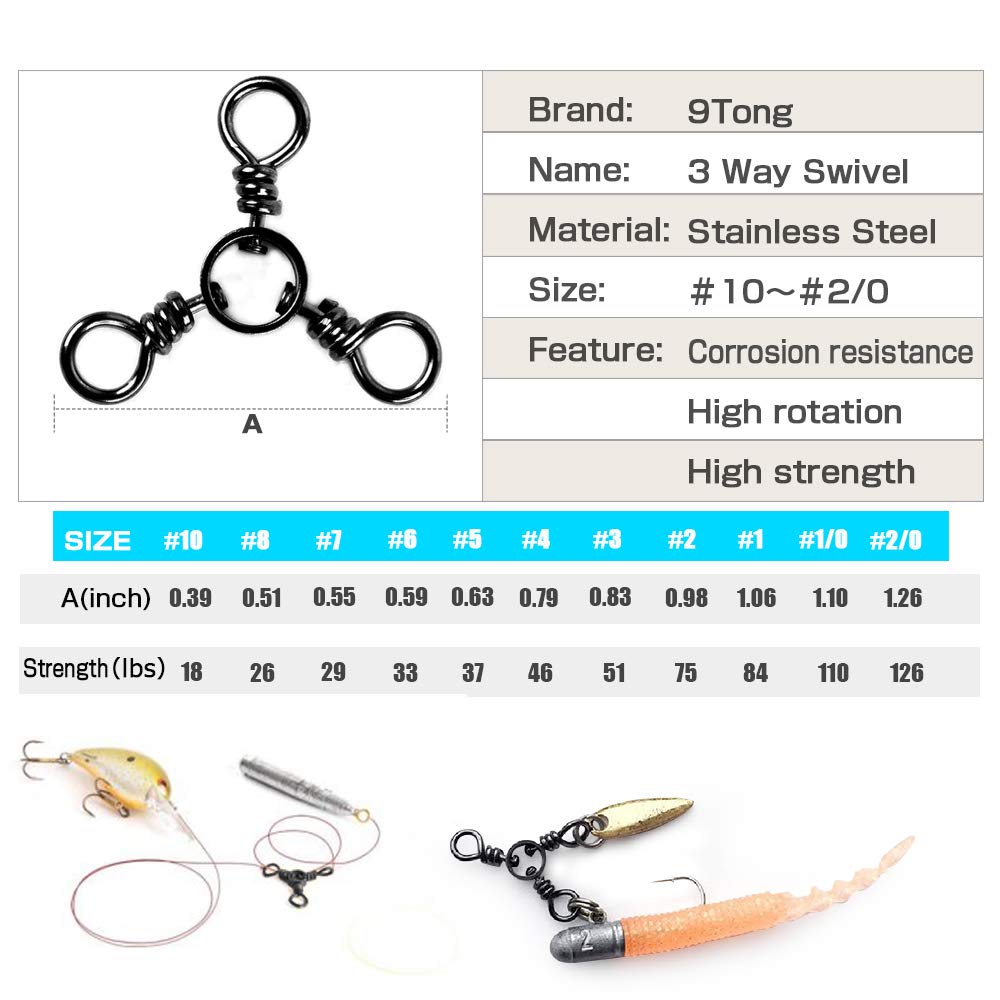 Angler aufgepasst! Diese 3-Wege Wirbel von 9Tong sind echte Allrounder. Aus Edelstahl und Kupferlegierung, schwarz vernickelt für optimalen Korrosionsschutz - halten auch im Salzwasser was aus.