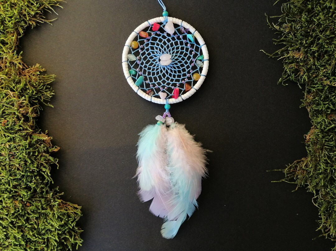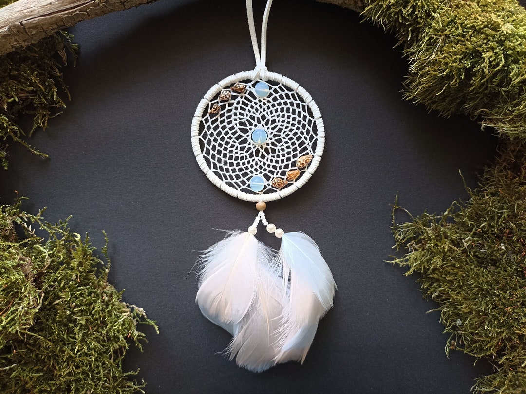 Dieser süße Traumfänger macht dein Auto zum magischen Ort! Mit 15cm Länge und 2,5cm Durchmesser ist er perfekt für deinen Rückspiegel. Handgefertigt aus natürlichen Federn, hochwertigem Garn und schönen Perlen - jedes Stück ein Unikat! Die Federn sind komplett naturbelassen, daher können leichte Farbunterschiede auftreten. Laut Legende fängt der Traumfänger schlechte Träume ein und lässt nur die guten durch. Aber Achtung: Bitte so am Spiegel befestigen dass die Sicht nicht behindert wird! Nicht geeignet für Kinder unter 3 Jahren wegen Kleinteilen. Du kannst ihn aber auch an Taschen, im Schlafzimmer oder Babyzimmer aufhängen. Ein wunderschönes Geschenk für alle die an Magie glauben oder einfach nur hübsche Deko lieben!