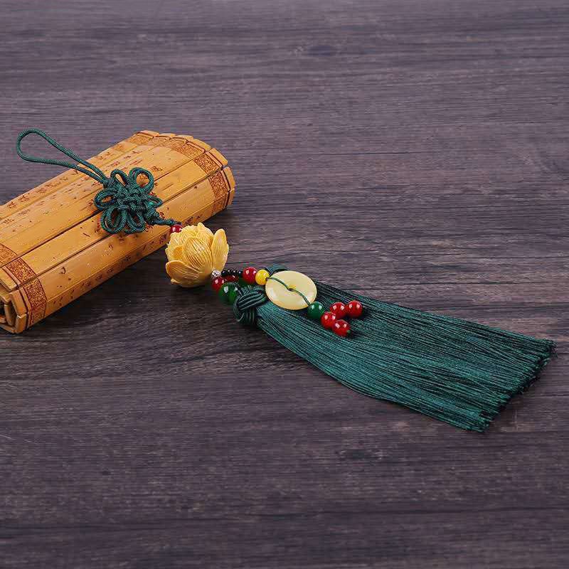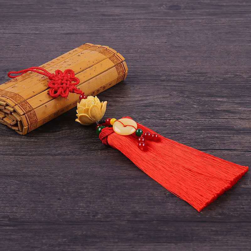 ISpchen Auto Spiegel Anhänger Lotus - Chinesischer Knoten Quaste 31cm
