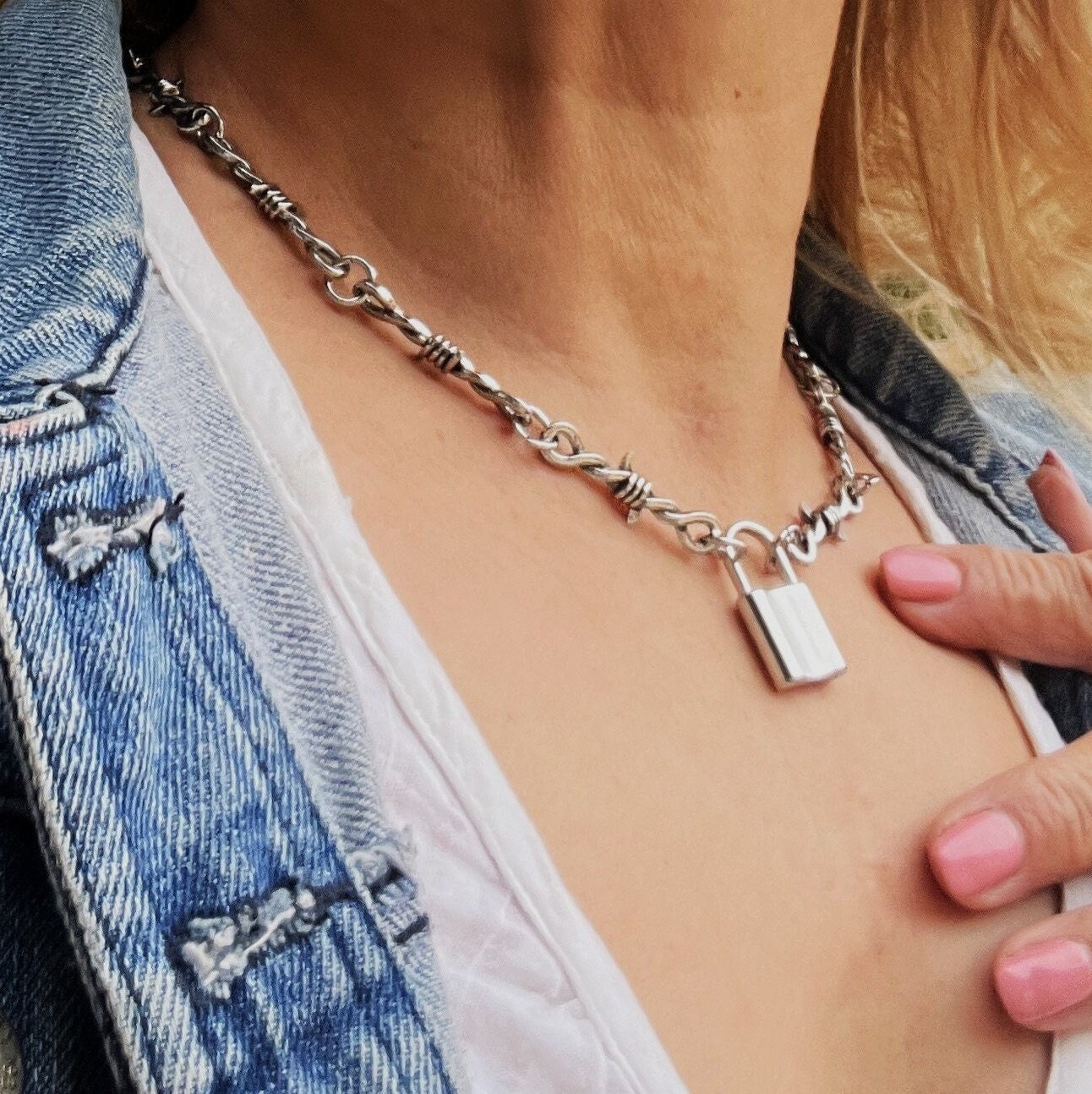 Ob zu lässiger Kleidung oder als Eyecatcher zu schickerer Garderobe - diese Halskette passt immer! Das Retro-Punk-Design ist absolut zeitlos und macht jedes Outfit interessanter.