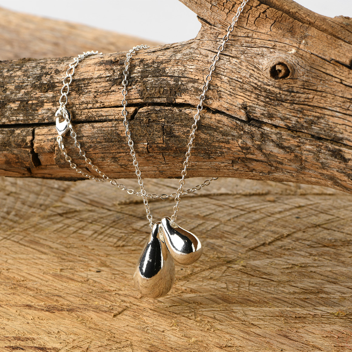 Dieser wunderschöne Tropfen-Anhänger von MATERIA von Matthias Wagner ist einfach zeitlos elegant! Aus massivem 925 Sterling Silber gefertigt, liegt er schwer und wertig in der Hand. Die freischwingenden Tropfen-Elemente sind richtig dick und nicht hohl - das merkt man sofort! Die leichte Wölbung verleiht dem gesamten Stück eine dynamische Optik, die einfach fasziniert. Mit der feinen 1,2mm starken Venezianerkette (45cm Länge) sitzt der Anhänger perfekt am Hals. Die Rhodinierung sorgt dafür, dass der Schmuck nicht so schnell anläuft und schön glänzt. Maße: 20x65mm inklusive Öse, Gewicht des Anhängers: 4,64g. Falls du passende Ohrringe suchst - die gibt's ebenfalls im Shop (Art.Nr. SO-306). Geliefert wird das Ganze in einer hochwertigen Schmuckschachtel, also perfekt als Geschenk für deine Liebste, die Freundin oder einfach für dich selbst. Ein Schmuckstück, das garantiert auffällt!