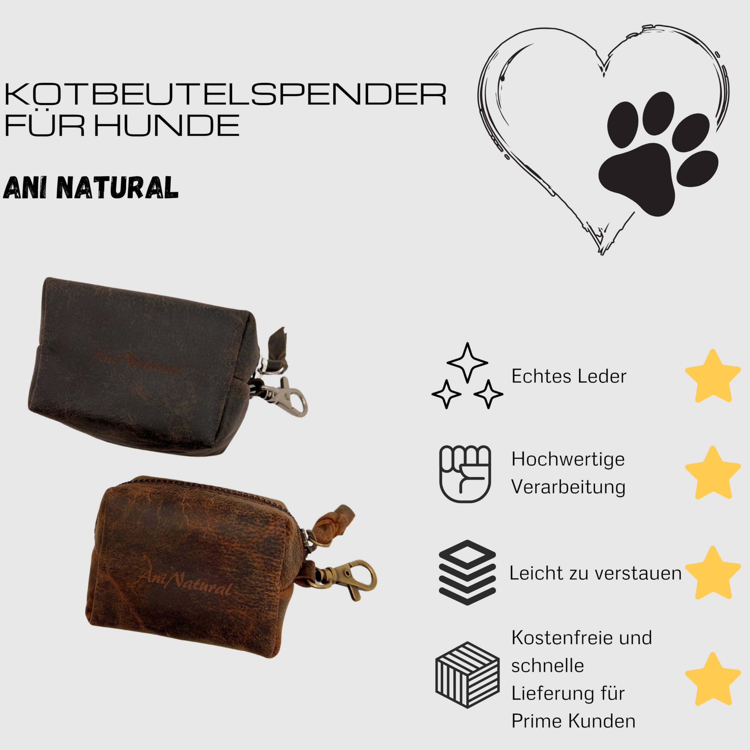• AniNatural Kotbeutelspender Leder - Braune Hundekotbeuteltasche