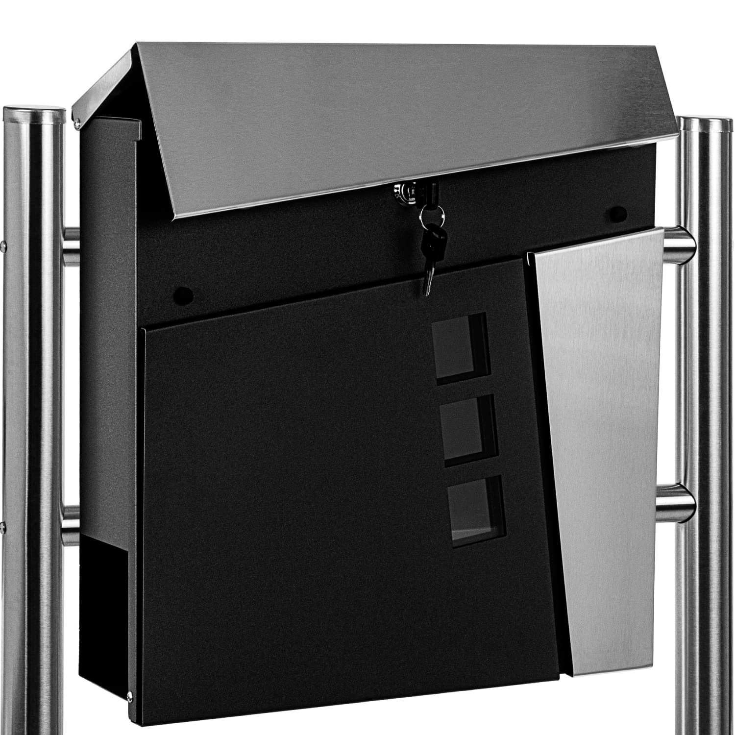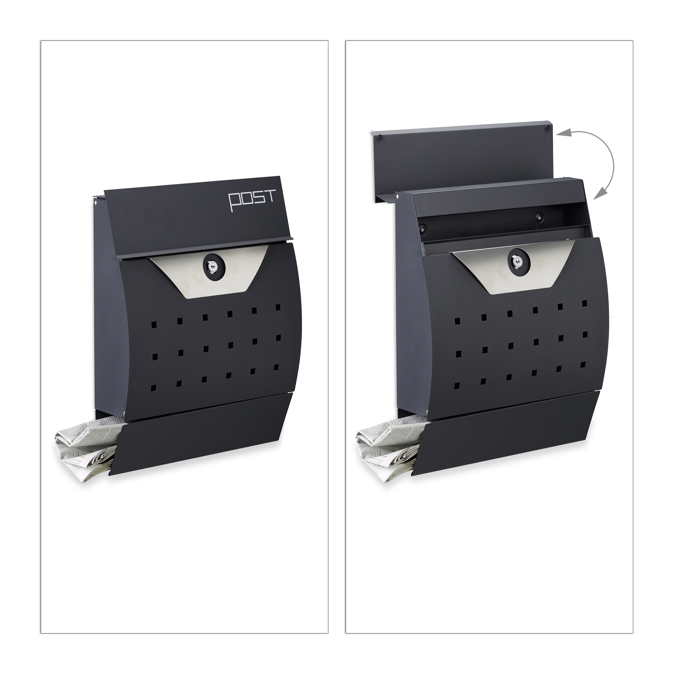 Der STILISTA Wandbriefkasten 'Lima' in Anthrazit ist einfach klasse! Mit 37x37x10cm Korpus bietet er viel Platz für Post und hat ein separates Zeitungsfach (36,5x8x9cm).\n\nDer große Einwurfschlitz (33,5x3,5cm) nimmt auch Großbriefe und dicke Umschläge problemlos auf. Und mit Schloss und 2 Schlüsseln ist eure Post sicher verwahrt.\n\nAus pulverbeschichtetem Metall - witterungsbeständig und langlebig. Die Montage ist einfach mit dem beiliegenden Material.\n\nDas moderne Design in Anthrazit passt zu fast jedem Haus. Und bei STILISTA gibt's noch 5 andere Modelle zur Auswahl!\n\nFür alle, die Wert auf Sicherheit, Stil und Praktikabilität legen - dieser Briefkasten ist die perfekte Wahl. Einfach montieren und sich über sichere Post freuen!