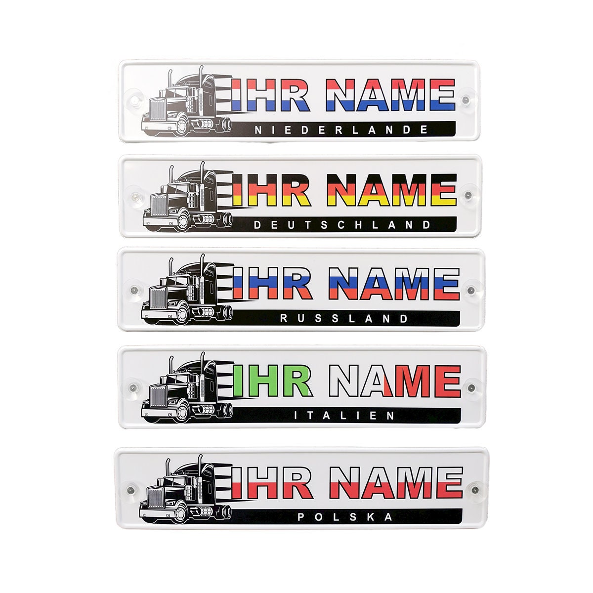 Zeig wer am Steuer sitzt! Dieses coole Namenschild für LKW, PKW oder Traktor lässt sich personalisieren. Maximal 9 Zeichen (keine Sonderzeichen). In Anthrazit mit weißer Folienbeschriftung. Inklusive 2 Saugnäpfe mit 30mm Gewinde M4x6mm für sicheren Halt. Einfach an der Scheibe befestigen und dein Fahrzeug bekommt persönliche Note. Super für Berufsfahrer oder alle, die ihr Auto individualisieren wollen. Mach dein Fahrzeug unverwechselbar!