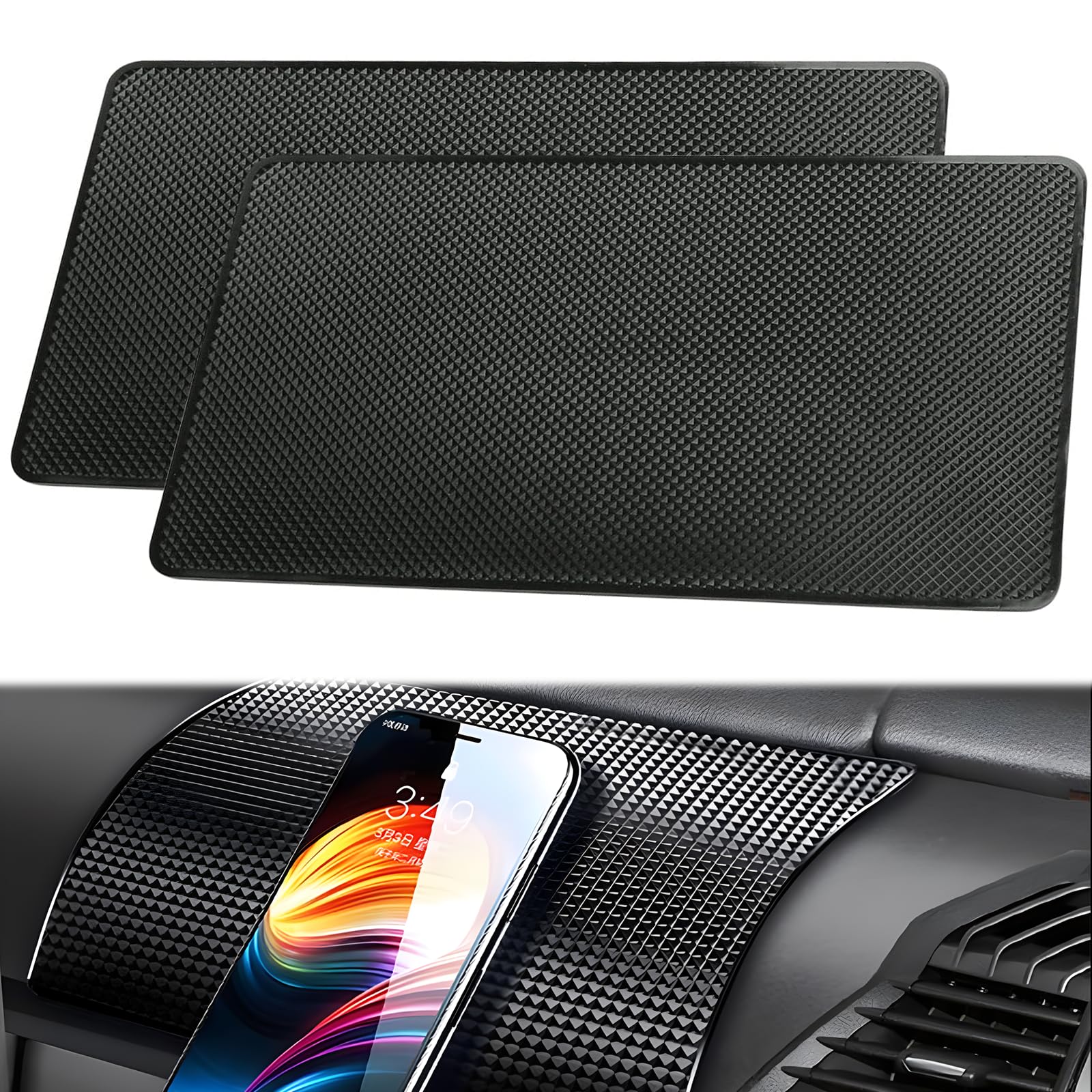 Endlich Ordnung auf dem Armaturenbrett! Diese 2 praktischen Silikon-Matten halten dein Handy, Sonnenbrille und Schlüssel sicher fest - selbst bei ruckartigen Fahrmanövern. Das 3-in-1 Design bietet eine Handyhalterung, Ablage für Kleinteile und ein Parknummernfeld mit Zahlenaufklebern. Maße: 19,9x10,9 cm, plus 2 runde Pads (5 cm Durchmesser). Aus hochwertigem, hitzebeständigem Silikon, rückstandsfrei entfernbar und waschbar. Einfach auflegen - schon ist alles organisiert. Perfekt für Auto, Büro oder Zuhause!