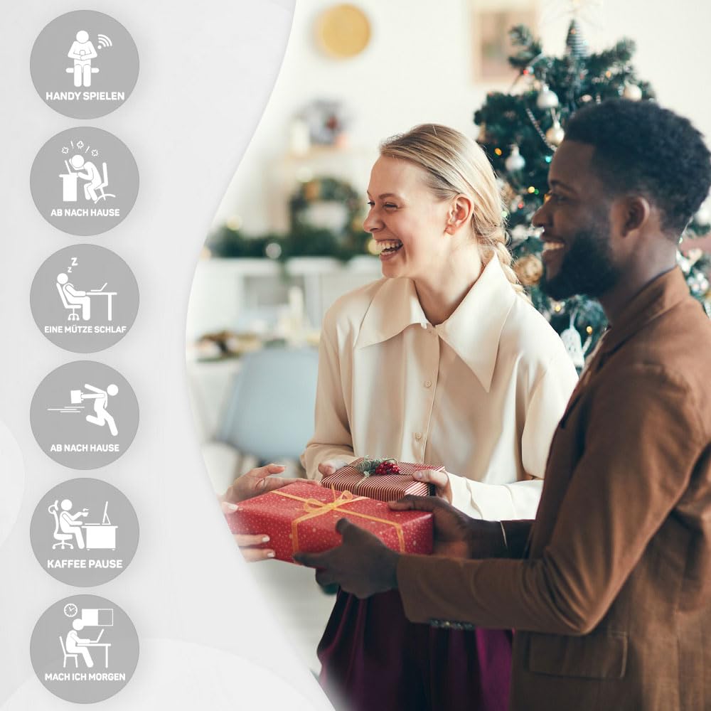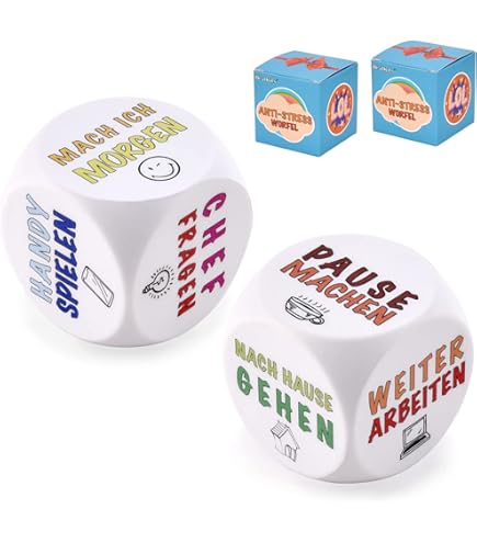 Der perfekte Stresskiller fürs Büro! Dieser lustige Entscheidungswürfel bringt Spaß und Entspannung in deinen Arbeitsalltag. Einfach würfeln und die Symbole zeigen dir, was als nächstes zu tun ist: Kaffeepause, Handy spielen, Mütze aufsetzen, schlafen gehen oder weiterarbeiten. Ideal als kleines Geschenk für Kollegen, Chefs oder zum Abschied eines Mitarbeiters. Auch super für Weihnachten, Geburtstage oder einfach mal zwischendurch. Aus robustem Edelstahl gefertigt, liegt er gut in der Hand und ist langlebig. Bringt Motivation und gute Laune in jedes Büro - ob für Frauen oder Männer, junge oder erfahrene Kollegen. Einfach mal den Würfel entscheiden lassen und überrascht sein, was dabei rauskommt! Perfekt als Wichtelgeschenk, für den Ruhestand oder einfach als Dankeschön.