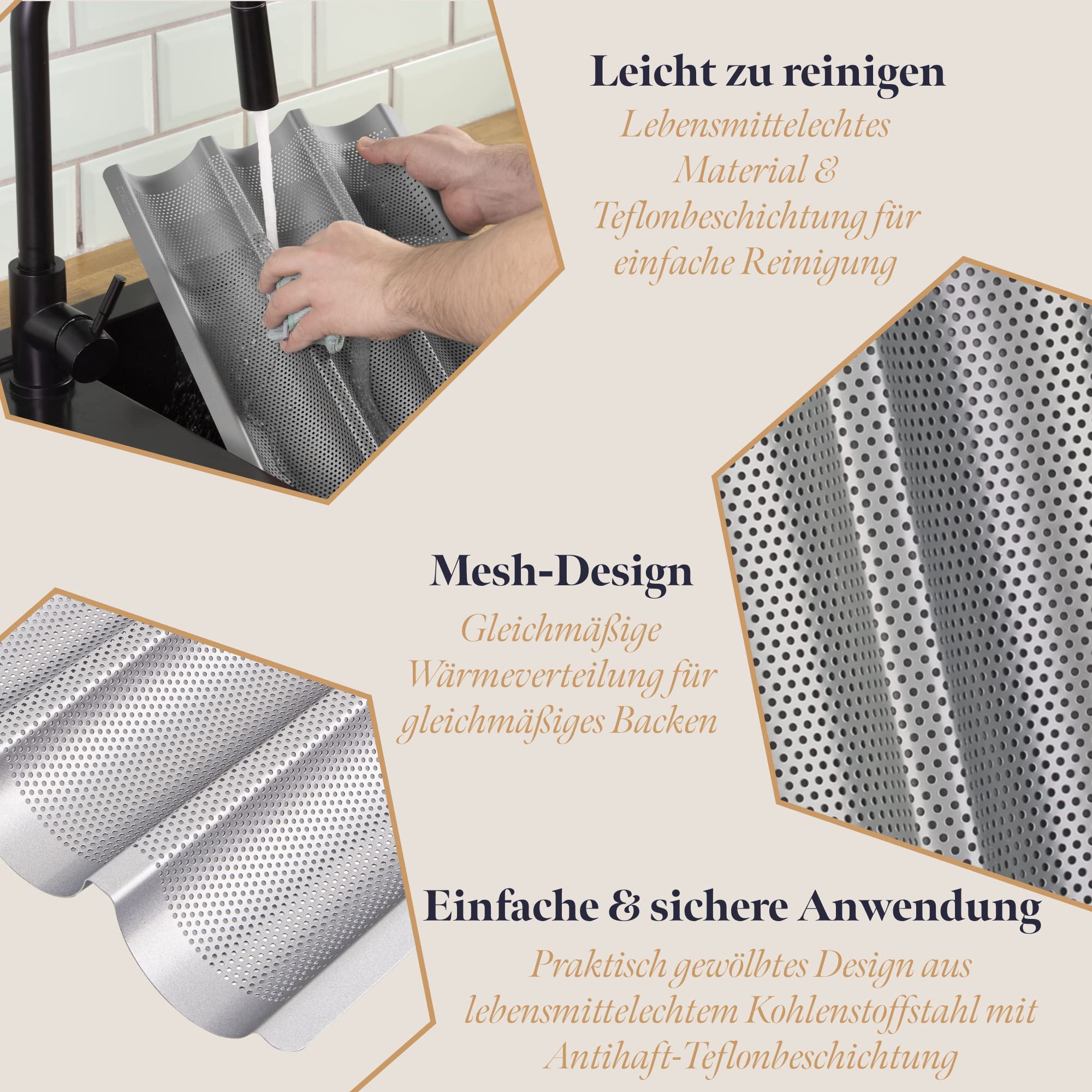 Backe perfekte französische Baguettes wie ein Profi! Dieses spezielle Baguette-Backblech macht's möglich.