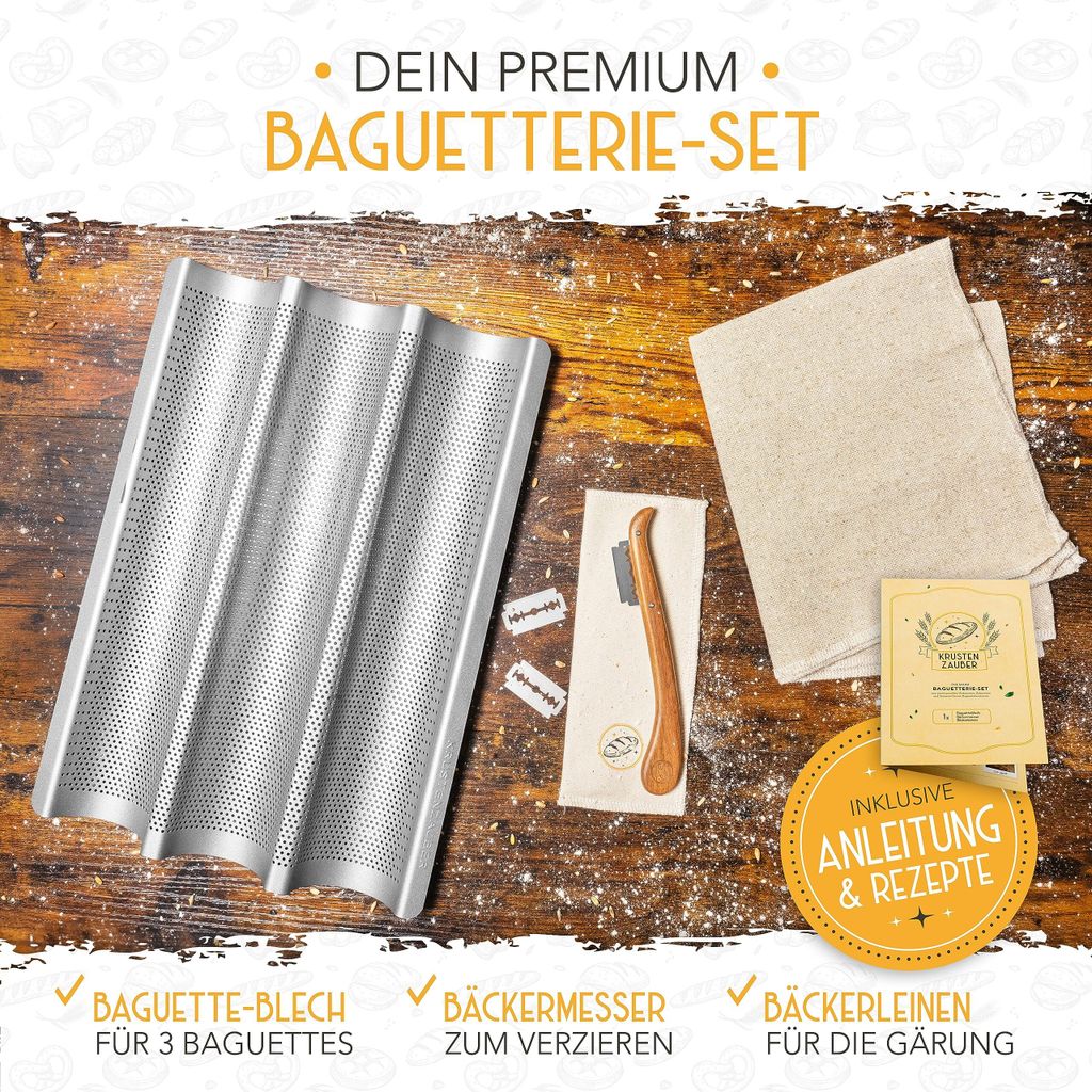 Im Lieferumfang: 1 Backblech + 1 Silikonpinsel (21cm). Alles was du für perfekte Baguettes brauchst!