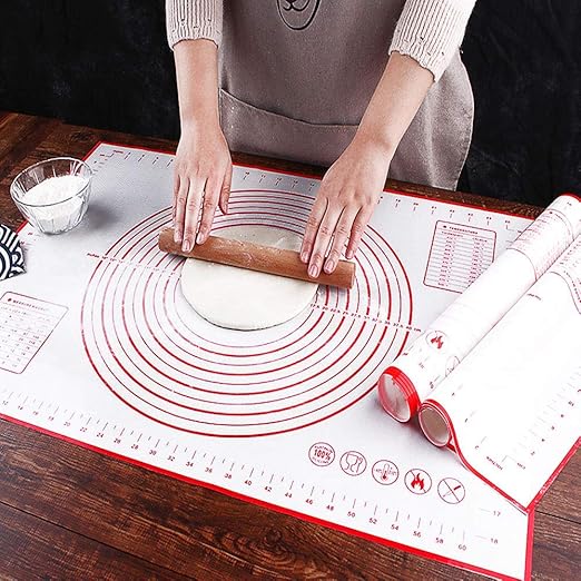 Bäckermeister aufgepasst! Diese Silikon-Backmatte macht das Backen zum Kinderspiel. Maße: 60x40 cm - groß genug für Pizza, Brot und Gebäck. Aus lebensmittelechtem Silikon mit Fiberglas-Verstärkung - super stabil! Hitzebeständig von -45°F bis 450°F - also backofen- und mikrowellengeeignet. Antihaft-Oberfläche - kein Einfetten mehr nötig, der Teig löst sich super einfach! Rutschfeste Unterseite - bleibt fest auf der Arbeitsplatte liegen. Mit Skalenmarkierungen in cm und Zoll - perfekt für präzises Ausrollen und Messen. Einfach zu reinigen und platzsparend aufzubewahren - einfach zusammenrollen oder aufhängen. Perfekt für Fondant, Makronen, Pizza, Brot - einfach für alles was du backst! Auch super als Knetunterlage oder Tischset. Umweltfreundlich und wiederverwendbar - schmeiß keine Backpapier mehr weg! Hol dir diese Matte und backe wie ein Profi!
