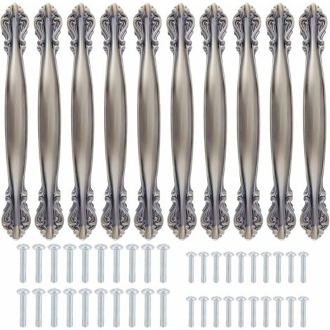 Verpasse deinen Möbeln einen vintage Look! Diese 10 antiken Griffe in Messing-Optik sehen einfach klasse aus. Mit 128mm Lochabstand und 167mm Gesamtlänge passen sie perfekt zu Schränken, Kommoden und Truhen. Inklusive 25mm und 45mm Schrauben für verschiedene Möbeldicken. Aus hochwertiger Zinklegierung - robust und langlebig. Einfach zu montieren, kein Profi nötig. Ob in der Küche, im Bad oder Schlafzimmer - diese Griffe machen aus langweiligen Möbeln echte Hingucker!