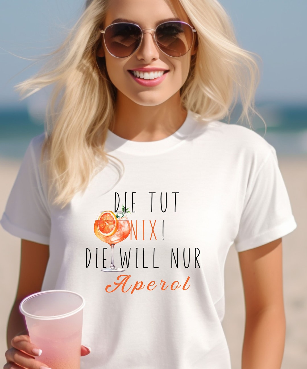Prost mit Style! Dieses lustige Hallöchen Aperölchen T-Shirt ist der absolute Hit für alle Aperol Spritz-Fans! Das coole Design mit dem humorvollen Spruch bringt sofort Sommer- und Partystimmung - egal ob bei Karneval, auf Festivals oder einfach im Alltag. Hergestellt aus weichem, atmungsaktivem Material fühlt sich das Shirt super angenehm auf der Haut an. Der Rundhalsausschnitt und die kurzen Ärmel sorgen für perfekten Tragekomfort an warmen Tagen. Perfekt als Geschenk für die beste Freundin, als Outfit für die nächste Faschingsparty oder einfach als Statement-Shirt für entspannte Sommerabende. Die Qualität ist top - maschinenwaschbar und farbecht, damit der Spaß lange hält. Also, worauf wartest du? Hol dir dieses coole Shirt und zeig allen, dass du den echten Aperol-Spritz-Style draufhast!