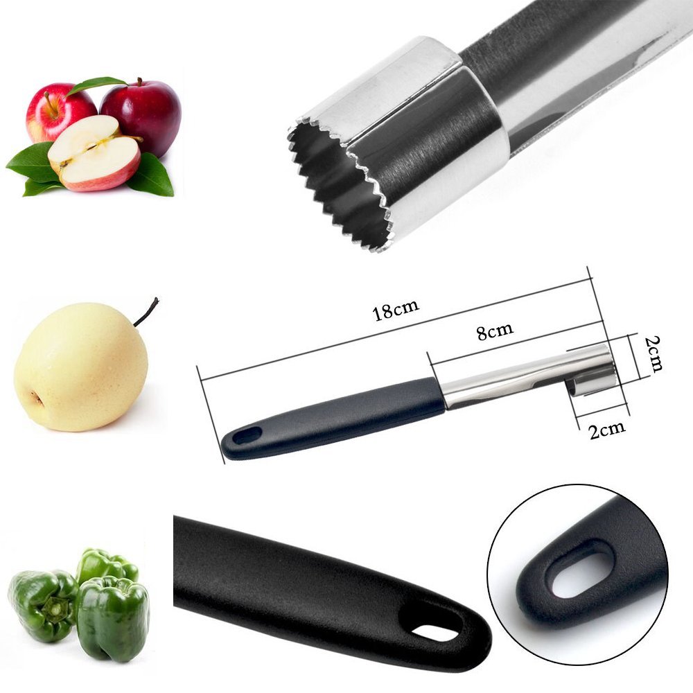 Schluss mit mühsamem Obst-Entkernen! Dieser Apfelentkerner aus hochwertigem Edelstahl macht die Arbeit zum Kinderspiel. Einfach auf den Apfel, die Birne oder sogar Paprika setzen, kurz drücken und schon ist der Kern entfernt - sauber und ohne Sauerei! Mit 16cm Länge liegt er gut in der Hand, der ergonomische Griff sorgt für komfortables Arbeiten. Aus rostfreiem Edelstahl 304 gefertigt, ist er spülmaschinenfest und hält ewig. Das hängende Loch am Ende ermöglicht platzsparende Aufbewahrung. Perfekt für die Vorbereitung von Obstsalaten, Kuchen oder einfach für den gesunden Snack zwischendurch. Spart Zeit und Nerven - warum kompliziert, wenn's auch einfach geht? Ein Küchenhelfer, den man nicht mehr missen möchte!