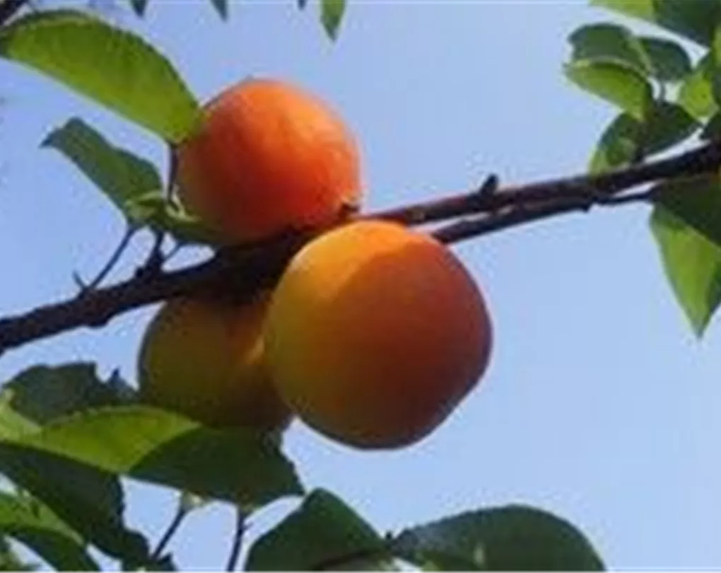Traust du dich an Aprikosen in Deutschland? Mit der Kuresia-Sorte klappt's bestimmt! Dieser Aprikosenbaum ist speziell für unser Klima gezüchtet und trägt auch in Norddeutschland zuverlässig Früchte. Das Beste: Er ist resistent gegen die Scharka-Krankheit, die bei Aprikosen und Zwetschen oft Probleme macht. Die Früchte werden relativ groß, sind sonnenseits rötlich und das Fruchtfleisch löst super vom Stein. Und was für ein Aroma! Erntezeit ist Ende Juli bis Anfang August - genau wenn Sommer ist. Im Frühjahr bezaubert der Baum mit wunderschönen rosa-roten Blüten - ein echter Hingucker im Garten. Wird als Buschbaum ca. 3-4 Meter hoch, also nicht zu groß für normale Gärten. Selbstfruchtbar - du brauchst also keinen zweiten Baum für die Befruchtung. Kommt im 10L Topf mit 100-120cm Höhe - schon ein stattliches Bäumchen also. Ob frisch vom Baum, als Marmelade oder Kuchenbelag - selbstgeerntete Aprikosen schmecken einfach am besten. Wenn du also mal was anderes als Äpfel und Birnen im Garten haben willst - probier's mit dieser robusten Aprikose. Sie wird dich mit reicher Ernte und wunderschöner Blüte belohnen!
