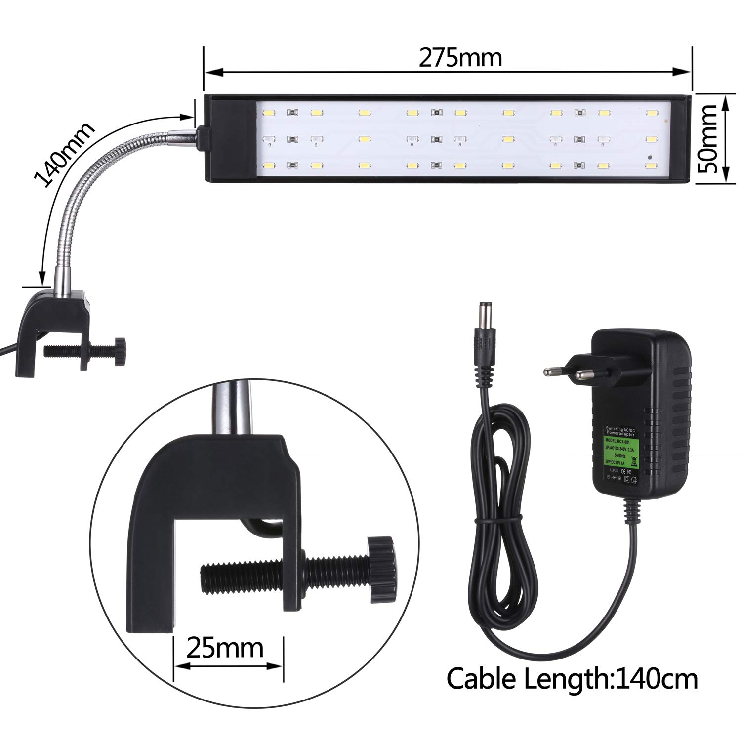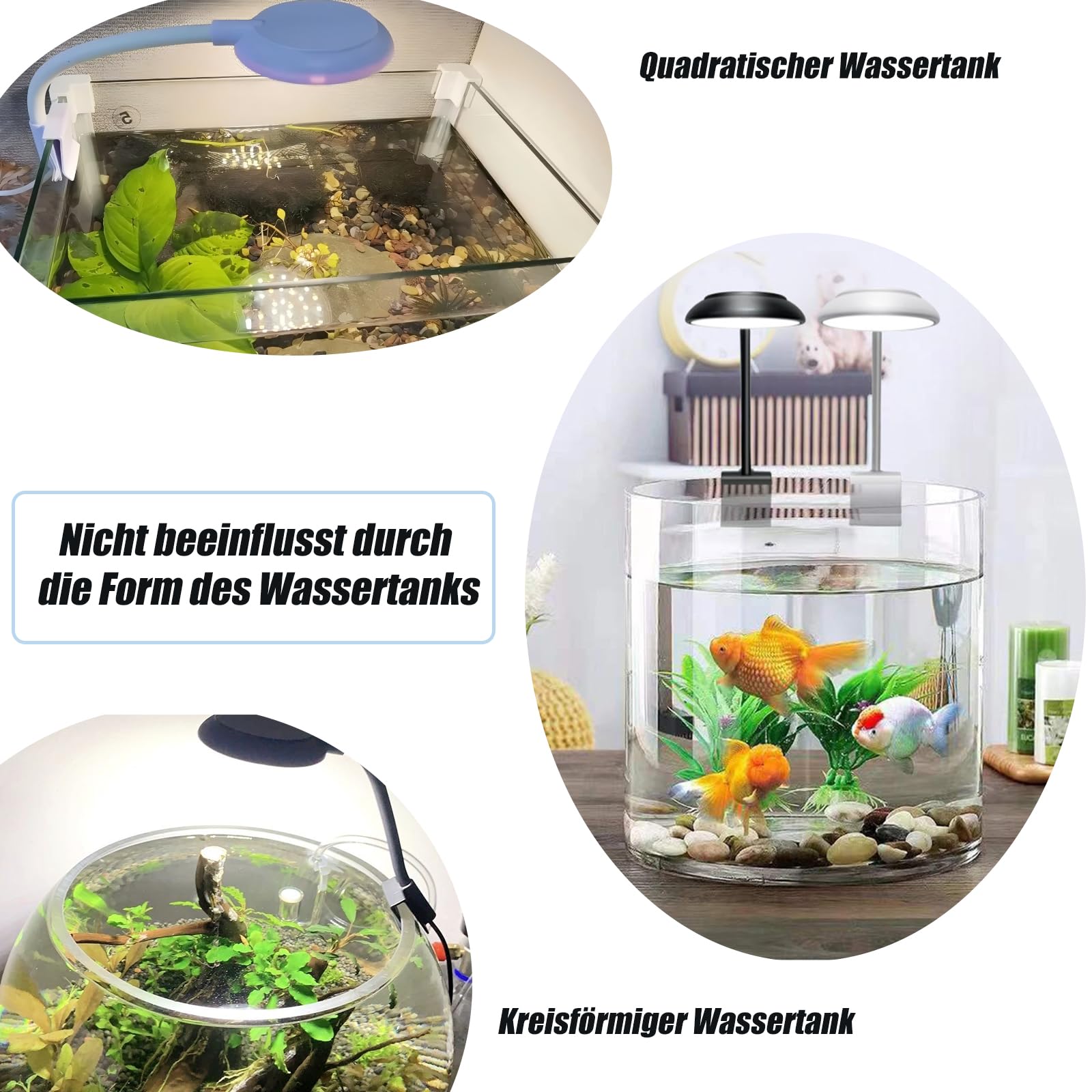 Wow, deine Fische und Pflanzen werden sich freuen! Diese coole Aquarium-Lampe mit 7W Leistung und 34 LED-Chips bringt echtes Leben in dein 20-40cm Becken. Das besondere: Du kannst zwischen Weiß, Rot-Grün-Blau oder einer Mischung wählen - total flexibel! Der Dimmer regelt die Helligkeit in 10 Stufen von 10% bis 100%, perfekt für empfindliche Fische. IP65 wasserdicht heißt: Keine Angst vor Spritzwasser! Der verstellbare Metallarm dreht sich 360 Grad, damit du den perfekten Winkel findest. Das Aluminium-Gehäuse kühlt super und verlängert die Lebensdauer. Für Süßwasser-Aquarien ideal, fördert das Pflanzenwachstum und macht die Farben deiner Fische richtig intensiv. Einfach anklipsen und genießen!
