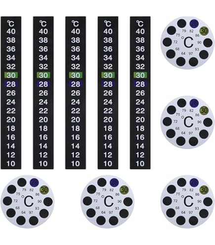 Immer die perfekte Wassertemperatur im Blick! Diese praktischen Thermometer-Aufkleber sind die ideale Lösung für dein Aquarium, Terrarium oder sogar für Kombucha. Einfach das Klebeband abziehen und auf die Außenseite des Glases kleben - schon siehst du sofort die aktuelle Temperatur. Der Messbereich von 10°C bis 40°C (50°F bis 104°F) deckt alle gängigen Anwendungen ab. Die digitale Anzeige ist super genau und leicht abzulesen. Mit 13cm Länge und 2cm Breite passen sie auch an kleinere Aquarien. Perfekt für alle, die ihren Fischen, Reptilien oder nützlichen Bakterien optimale Lebensbedingungen bieten wollen. Im 12er-Pack hast du lange Vorrat und kannst mehrere Behälter gleichzeitig überwachen. Die schwarze Farbe sieht dezent aus und stört nicht die Optik deines Aquariums. Einfach, praktisch und zuverlässig - so behältst du immer den Überblick über die Wassertemperatur!