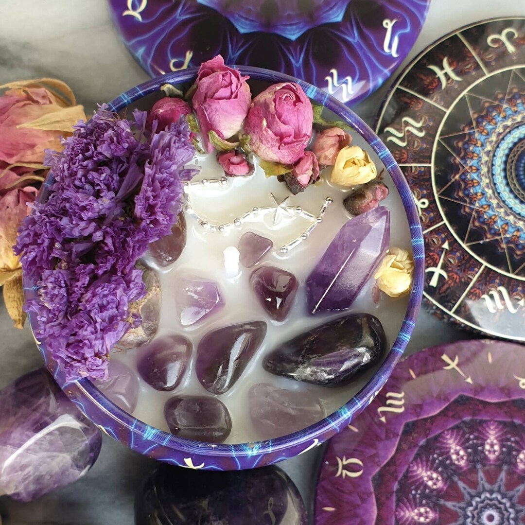 Aquarius Sternzeichen Kerze - Mit Bergamotte Duft & Amethyst Kristallen