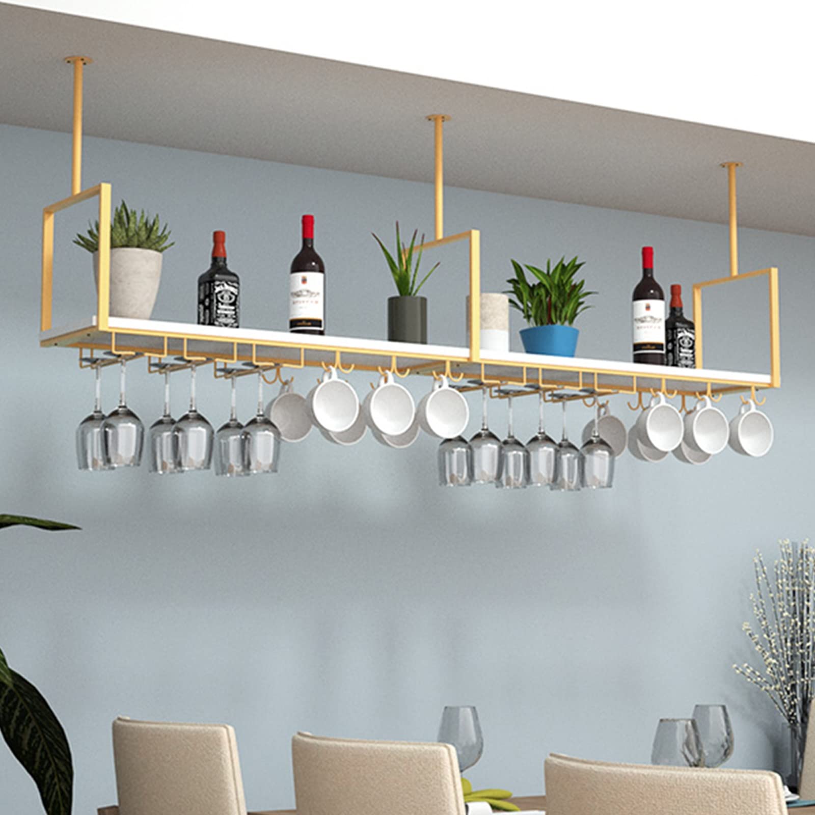 Dieser Weinglashalter bringt Ordnung und Stil in deine Küche oder Bar! Mit 35 cm Höhe und 15 cm Bodenbreite bietet er stabilen Halt für deine Weingläser. Aus robustem Eisen gefertigt und mit hochwertiger Pulverbeschichtung - rostfrei und langlebig. Die Aufhängeplatte mit 26 cm Breite bietet Platz für mehrere Gläser. Perfekt unter Arbeitsplatten oder Regalen montierbar - spart wertvollen Stauraum. Das elegante Design passt zu jedem Einrichtungsstil. Einfache Montage - deine Gläser sind immer griffbereit und sicher verwahrt. Super praktisch für Partyvorbereitungen oder den täglichen Gebrauch. Hol dir jetzt diesen cleveren Glas-Halter und verbanne das lästige Gläser-Suchen aus deinem Leben!