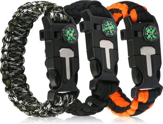 Immer vorbereitet fürs Abenteuer! Diese 4 praktischen Survival-Armbänder sind deine persönliche Notfall-Ausrüstung für unterwegs. Jedes Armband kombiniert 5 wichtige Survival-Tools: Feuerstein fürs Feuermachen, Kompass für die Orientierung, Signalpfeife für Notsituationen, robustes Paracord-Seil und eine Mini-Säge. Aus hochwertigem 7-Kern-Fallschirmseil gefertigt, ist jedes Armband extrem reißfest und vielseitig einsetzbar. In 4 verschiedenen Farbkombinationen erhältlich: Schwarz, Army Green, Army Green Camouflage und Orange/Schwarz. Mit 26cm Länge passen sie für die meisten Handgelenke. Super leicht und komfortabel zu tragen, ohne zu stören. Perfekt für Camping, Wandern, Angeln, Jagd oder jede andere Outdoor-Aktivität. Das Paracord kann im Notfall abgewickelt und für verschiedene Zwecke verwendet werden. Ein praktisches Accessoire das im Ernstfall lebenswichtig sein kann. Adventure ready!