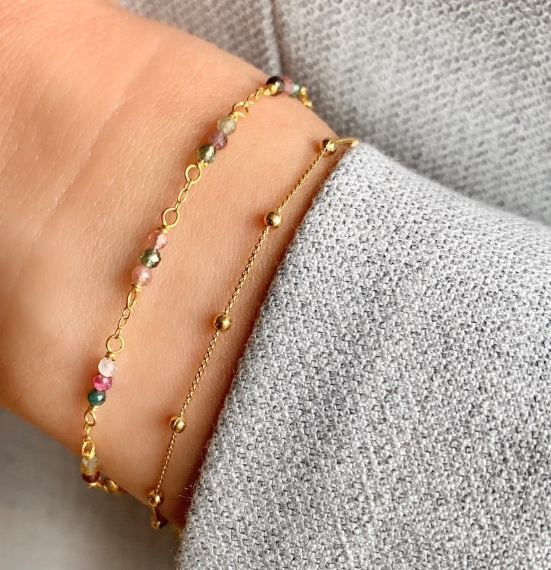 Wow, dieses Armband ist einfach traumhaft! Kombiniere die schützende Energie des Turmalins mit der sanften Intuition des Mondsteins. Die 3x4 mm facettierten Perlen funkeln dezent und elegant an deinem Handgelenk. Mit ca. 18 cm Länge und verstellbarem Design passt es praktisch jedem Handgelenk - ob schlank oder kräftiger. Perfekt für Meditation, spirituelle Rituale oder einfach als täglicher Begleiter, der positive Vibes verbreitet. Und das Beste: Es kommt in einer richtig schicken Verpackung, die es zum idealen Geschenk macht. Ob für die beste Freundin, die Schwester oder einfach für dich selbst - dieses Armband bringt Freude und positive Energie. Und falls es doch nicht gefällt: Kein Stress mit der Rückgabe! Echte Edelsteine, echte Qualität und ein Design, das einfach begeistert.