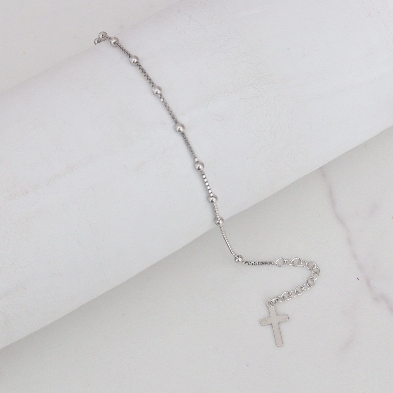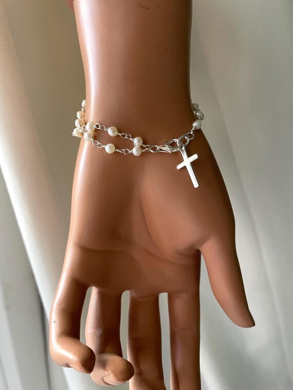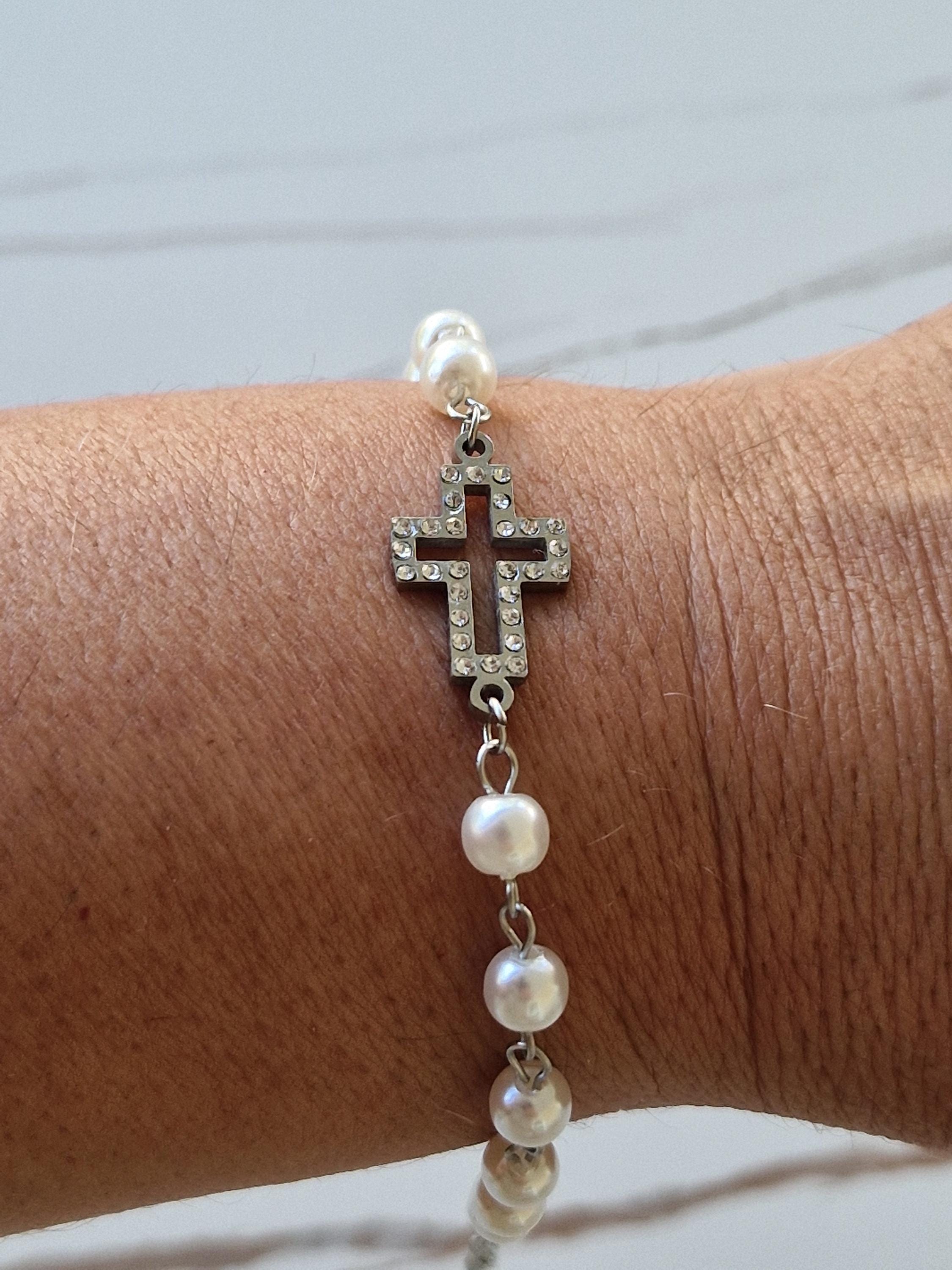 Dieses elegante Armband verbindet Spiritualität mit modernem Style! Die glänzenden silbernen Perlen harmonieren perfekt mit dem kunstvoll gestalteten katholischen Kreuz. Aus hochwertigem Metall gefertigt, ist es robust und langlebig. Der Rosenkranz-Anhänger verleiht dem Schmuckstück eine tiefe Bedeutung. Perfekt für religiöse Feste, aber auch alltagstauglich. Ob zur Kommunion, Firmung oder einfach als Zeichen des Glaubens - dieses Armband begleitet dich durch den Tag. Ein wunderbares Geschenk für besondere Anlässe oder einfach um jemandem eine Freude zu machen. Schick, modern und voller Bedeutung!