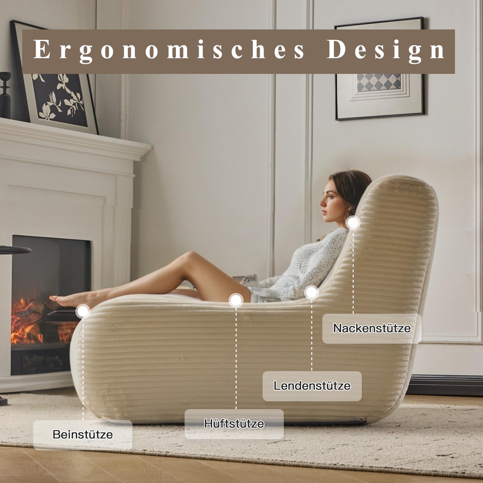 Boah, dieser Sitzsack ist der absolute Hammer! Aus weichem Cord-Stoff in schönem Beige. Richtig groß: 118 cm breit, hält bis zu 100 kg aus. Mit praktischen Armlehnen - total bequem zum Relaxen. Gefüllt mit elastischem Schaumstoff, der sich perfekt an deinen Körper anpasst. Perfekt fürs Wohnzimmer, Schlafzimmer oder Gaming-Bereich. Ob alleine chillen oder mit Freunden abhängen - hier ist Platz für alle. Rutschfeste Unterseite, robuste Nähte - hält ewig. Sieht mega stylisch aus und ist super gemütlich. Einfach reinsinken und entspannen!