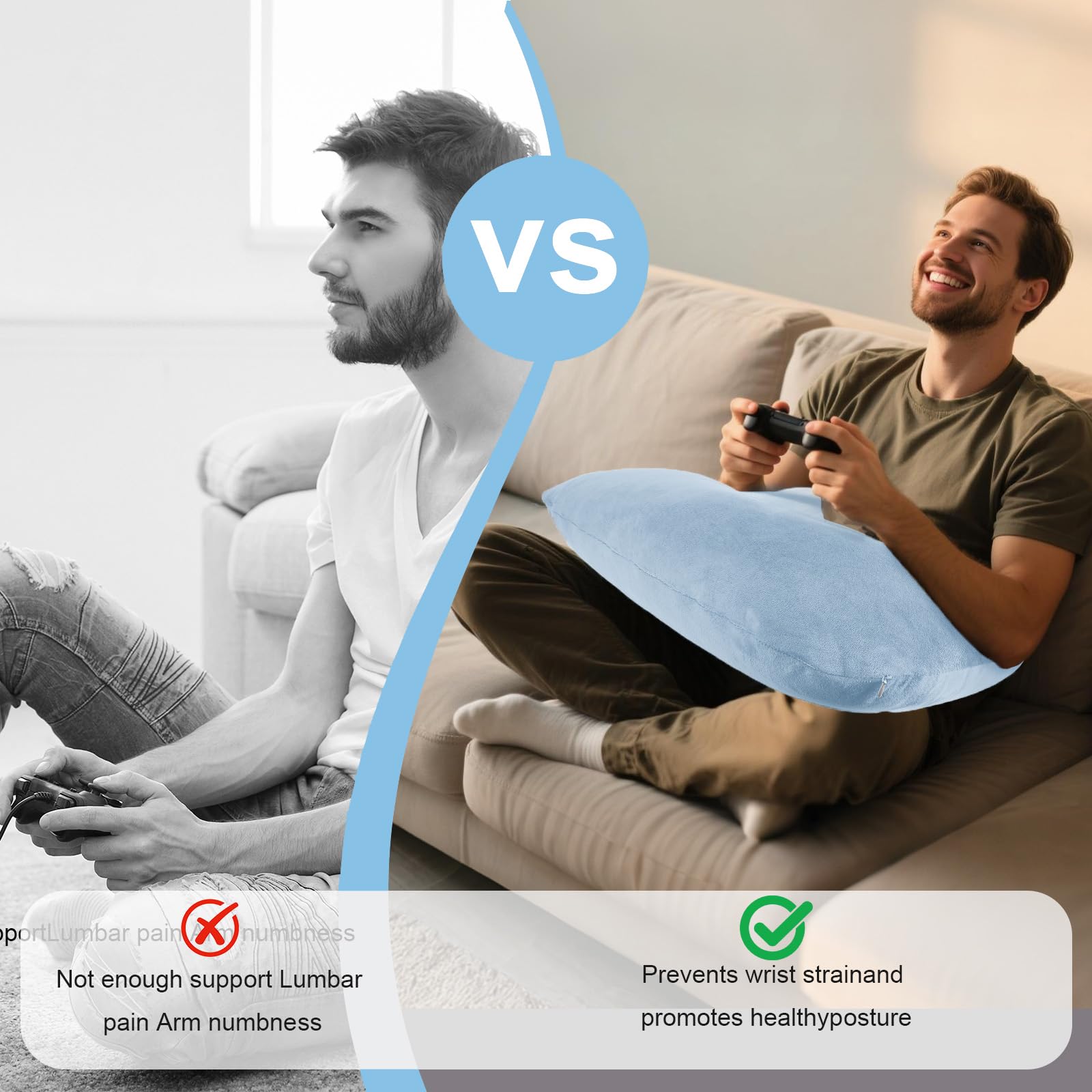 Stell dir vor: Du legst das U-förmige Kissen um dich rum, stützt deine Arme drauf ab - und schon musst du dich nicht mehr vorbeugen. Dein Handy, Buch oder Controller liegt perfekt vor dir, ohne dass deine Handgelenke wehtun. Nach mehreren Stunden Gaming oder Lesen fühlst du dich immer noch fresh.